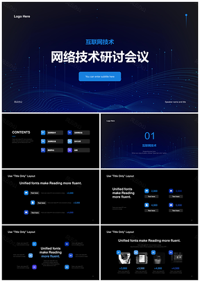 蓝色科技网络安全技术研讨数据分析PPT模板,蓝色科技网络安全技术研讨PPT模板,适用于会议汇报,特点为数据分析功能强大,设计风格科技简约。