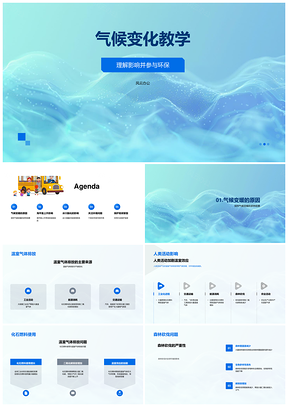 气候变化人类活动温室排放冰川消融海平面升PPT模板,PPT模板介绍:适用于气候变化研讨,含温室排放、冰川消融等要点,功能全面,设计简洁大气。
