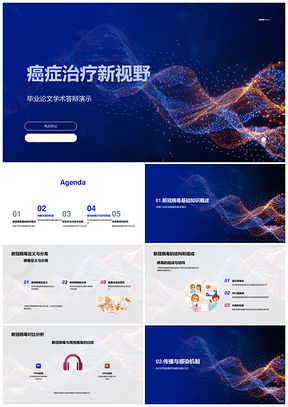 癌症治疗新冠传播机制及治疗策略研究PPT模板,癌症治疗与新冠传播机制及策略PPT模板,适用于学术研讨,特色功能图表展示,简约专业设计风格。