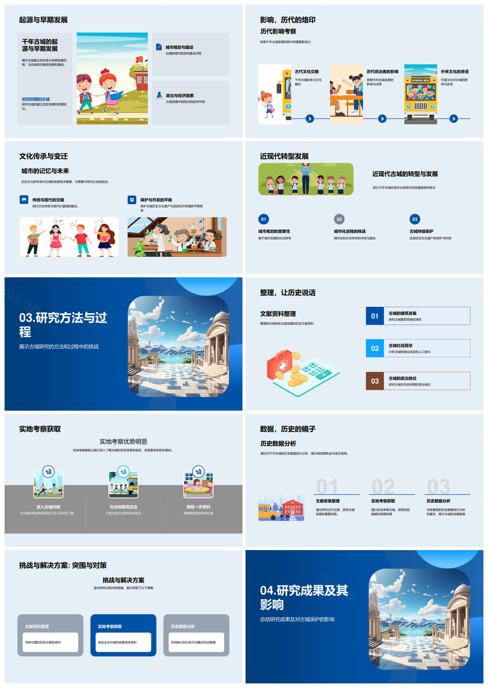 风云办公提供的古城千年发展历史研究方法与保护PPT模板,下载格式为pptx,一共27页,作品中文字及图均可以修改和编辑,图片更改请在作品中右键图片并更换,文字修改请直接点击文字进行修改。