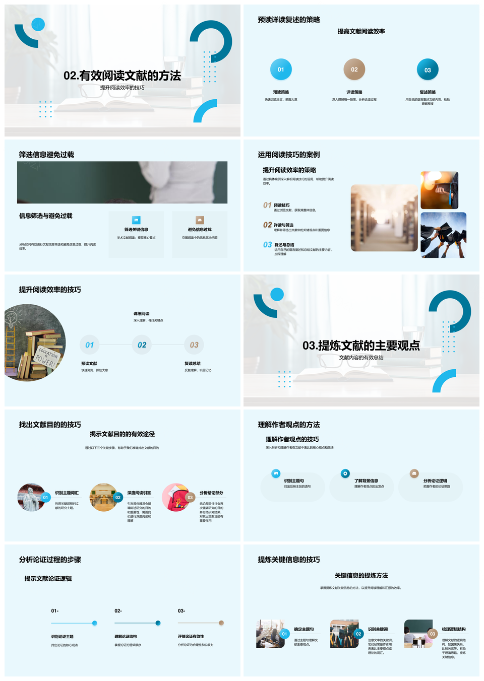 风云办公提供的文献阅读深度解析与效率提升技巧PPT模板,下载格式为pptx,一共29页,作品中文字及图均可以修改和编辑,图片更改请在作品中右键图片并更换,文字修改请直接点击文字进行修改。