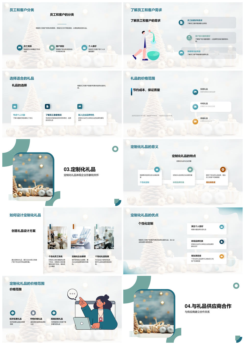这是一张圣诞员工客户赠礼企业形象定制供应商装饰优选PPT模板,包含员工、客户、赠礼、企业、形象、定制、供应商、装饰、优选等主题内容,也可用作圣诞员工客户赠礼、企业形象定制供应商装饰、定制供应商装饰优选、客户赠礼企业形象定制、企业形象定制供应商、圣诞客户赠礼优选、供应商装饰优选、企业形象装饰优选、圣诞员工客户优选、员工客户赠礼、企业形象定制、定制供应商、供应商装饰、客户赠礼、圣诞员工等PPT场景使用。 风云办公提供的圣诞员工客户赠礼企业形象定制供应商装饰优选PPT模板,下载格式为pptx,一共27页,作品中文字及图均可以修改和编辑,图片更改请在作品中右键图片并更换,文字修改请直接点击文字进行修改。