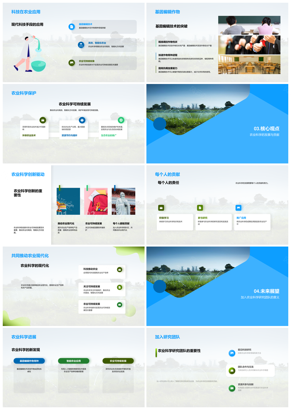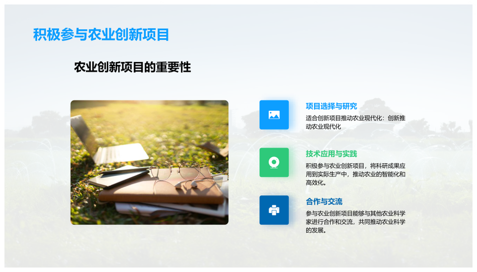 这是一张农业科学创新发展史研究领域农田科学家学生PPT模板,包含农业科学、创新发展史、研究领域、农田、科学家、学生等主题内容,也可用作农业科学创新发展史研究领域农田、创新发展史研究领域农田科学家、研究领域农田科学家学生、农业科学创新发展史研究领域、农业科学研究领域创新发展史、创新发展史研究领域农田、研究领域农田科学家、农田科学家学生、农业科学创新发展史农田、创新发展史农田科学家、农业科学创新发展史、农业科学研究领域、创新发展史研究领域、研究领域农田、农田科学家等PPT场景使用。 风云办公提供的农业科学创新发展史研究领域农田科学家学生PPT模板,下载格式为pptx,一共19页,作品中文字及图均可以修改和编辑,图片更改请在作品中右键图片并更换,文字修改请直接点击文字进行修改。