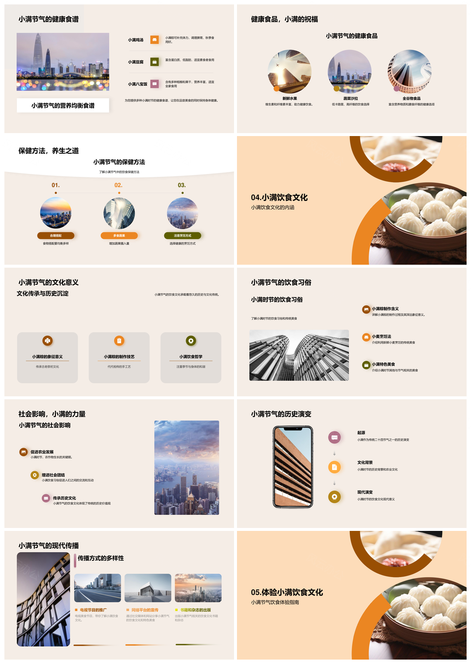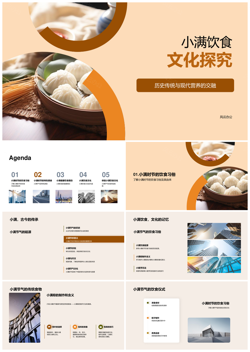 风云办公提供的小满节气饮食文化粽香健康营养配搭PPT模板,下载格式为pptx,一共33页,作品中文字及图均可以修改和编辑,图片更改请在作品中右键图片并更换,文字修改请直接点击文字进行修改。