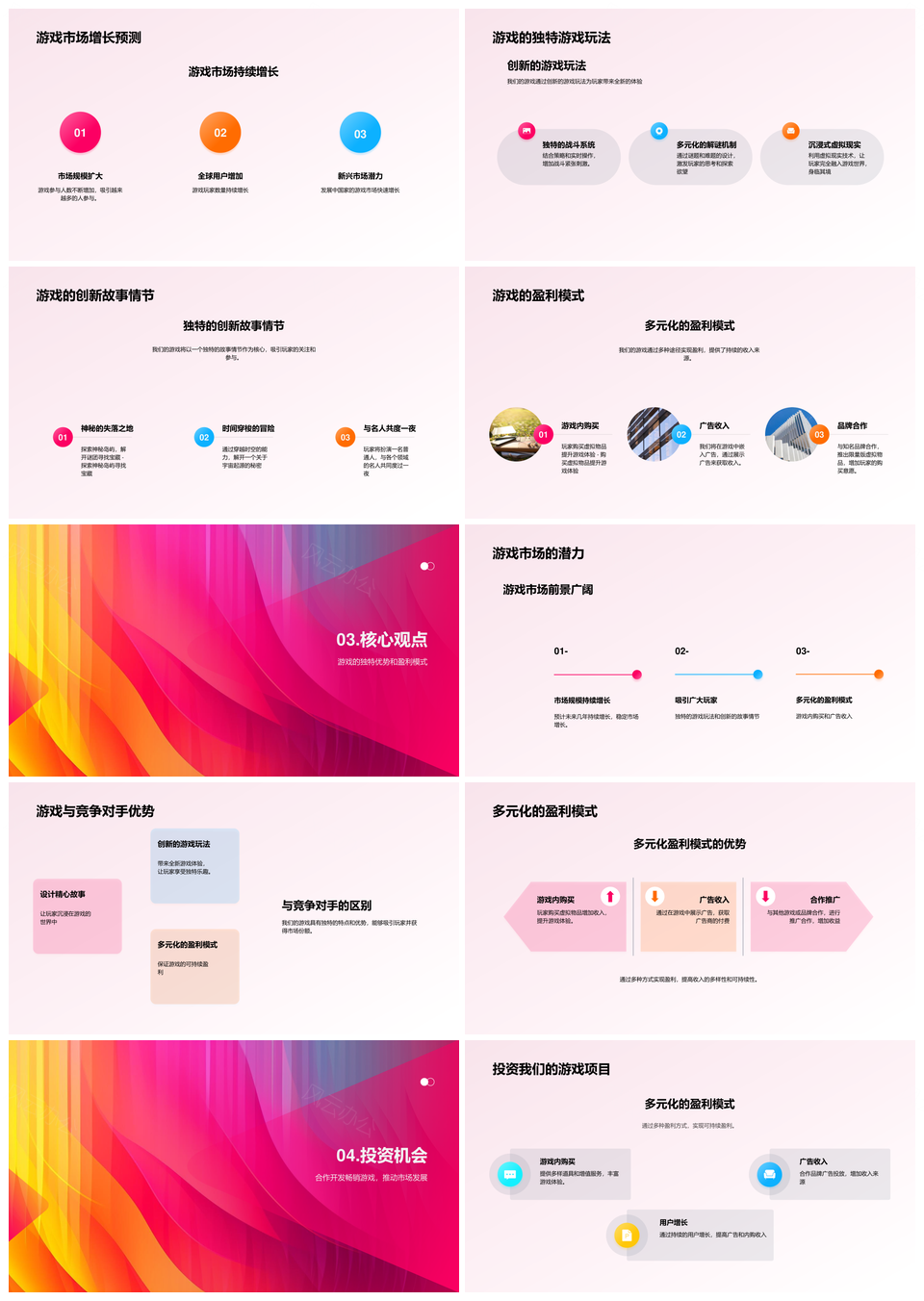 这是一张打造畅销游戏商业计划PPT模板,包含打造、畅销游戏、商业计划等主题内容,也可用作畅销游戏商业计划、打造游戏商业计划、打造畅销商业计划、打造畅销游戏、打造游戏商业、打造商业计划、游戏商业计划、畅销游戏商业、畅销游戏计划、打造游戏计划、打造游戏、畅销游戏、游戏商业、商业计划、游戏计划等PPT场景使用。 风云办公提供的打造畅销游戏商业计划PPT模板,下载格式为pptx,一共20页,作品中文字及图均可以修改和编辑,图片更改请在作品中右键图片并更换,文字修改请直接点击文字进行修改。