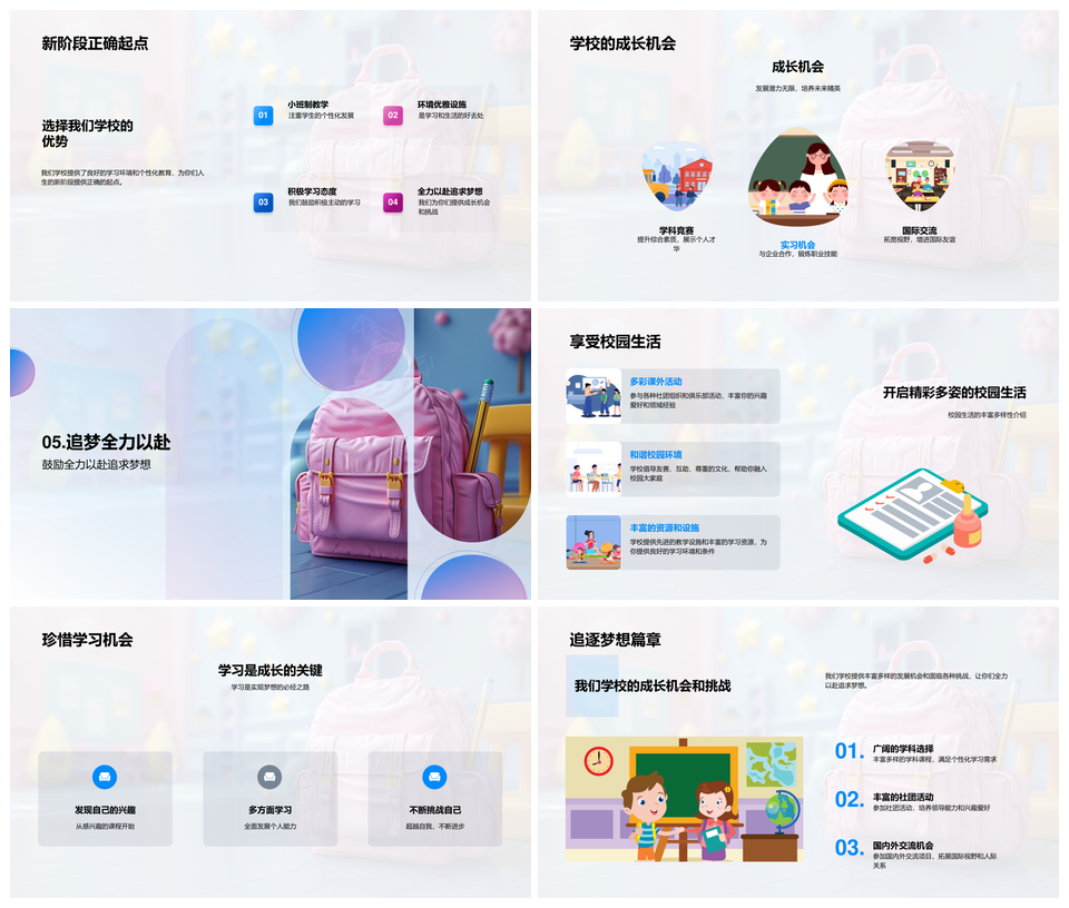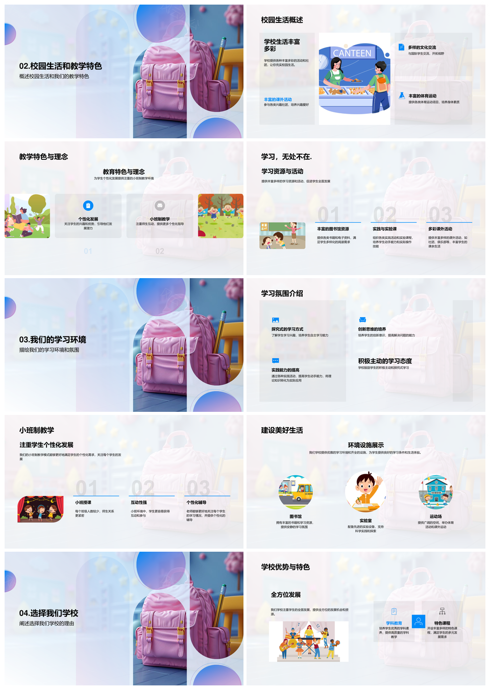 学校发展小班教学特色理念规划校园生活学风资源PPT模板推荐