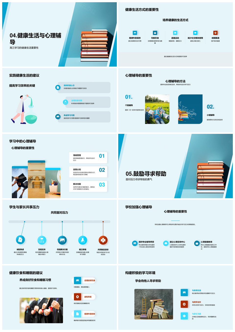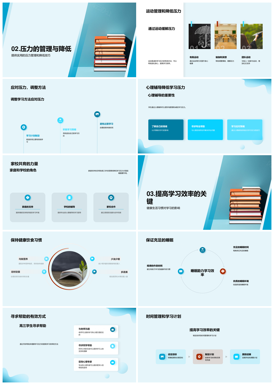 高三学习压力管理心理健康运动饮食睡眠导航PPT模板