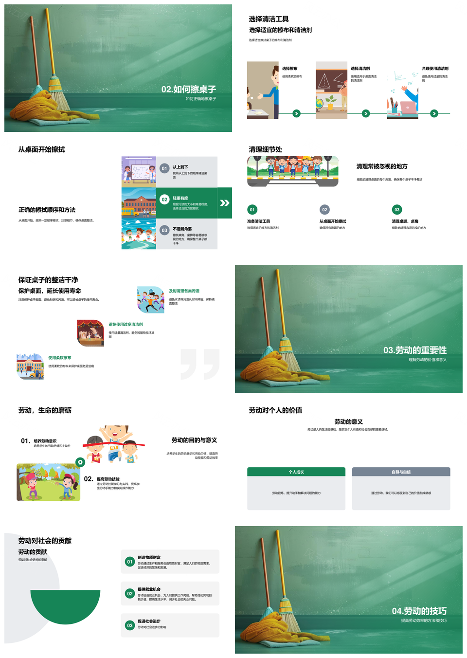 这是一张小学生家务劳动技能教学清洁技巧健康价值PPT模板,包含小学生、家务劳动技能、教学、清洁技巧、健康价值等主题内容,也可用作小学生家务劳动技能教学、家务劳动技能教学清洁技巧、技能教学清洁技巧健康价值、健康价值清洁技巧技能小学生、家务劳动技能教学、技能教学清洁技巧、家务劳动清洁技巧健康价值、教学清洁技巧健康价值、小学生家务劳动技能、家务劳动技能健康价值、小学生家务劳动、家务劳动技能、技能教学、教学清洁技巧、清洁技巧健康价值等PPT场景使用。 风云办公提供的小学生家务劳动技能教学清洁技巧健康价值PPT模板,下载格式为pptx,一共25页,作品中文字及图均可以修改和编辑,图片更改请在作品中右键图片并更换,文字修改请直接点击文字进行修改。