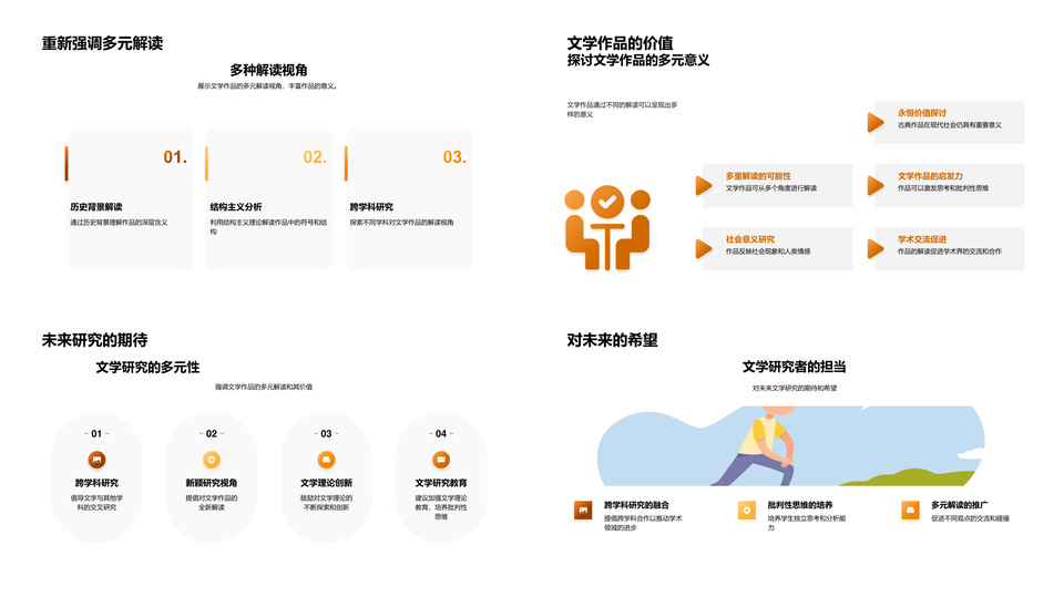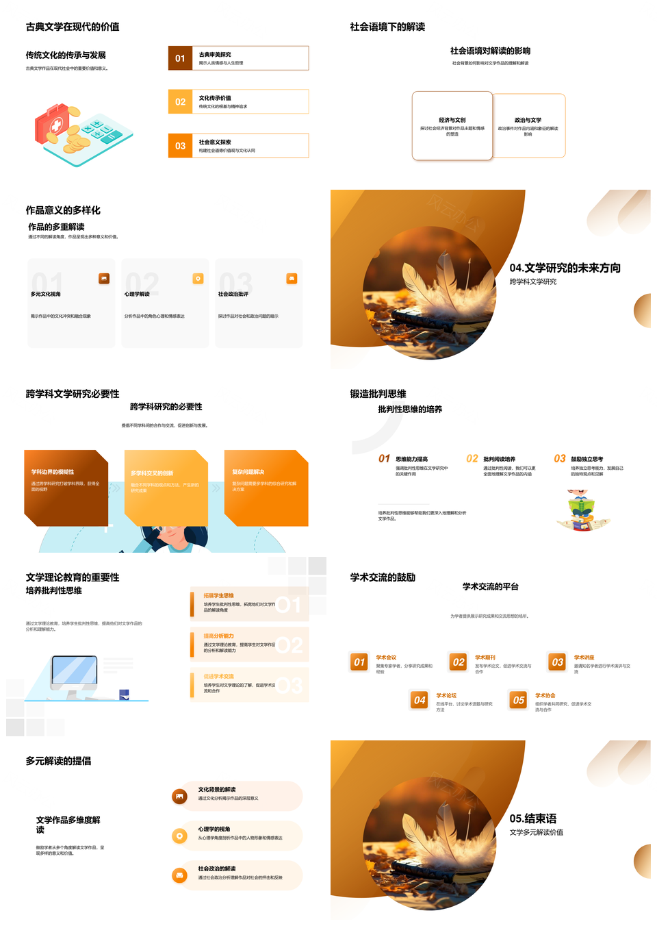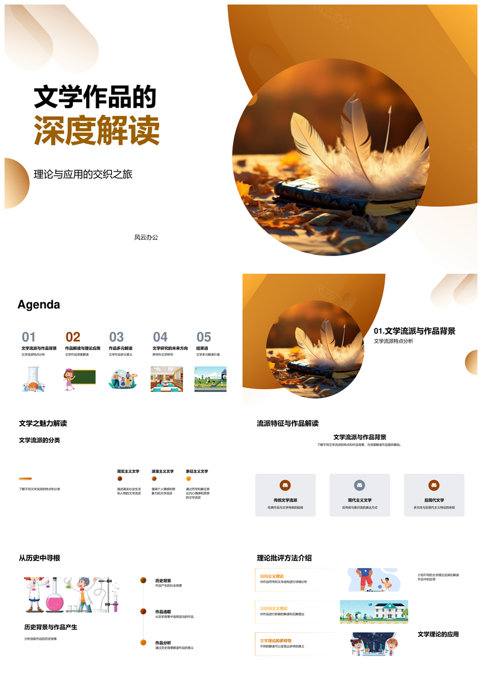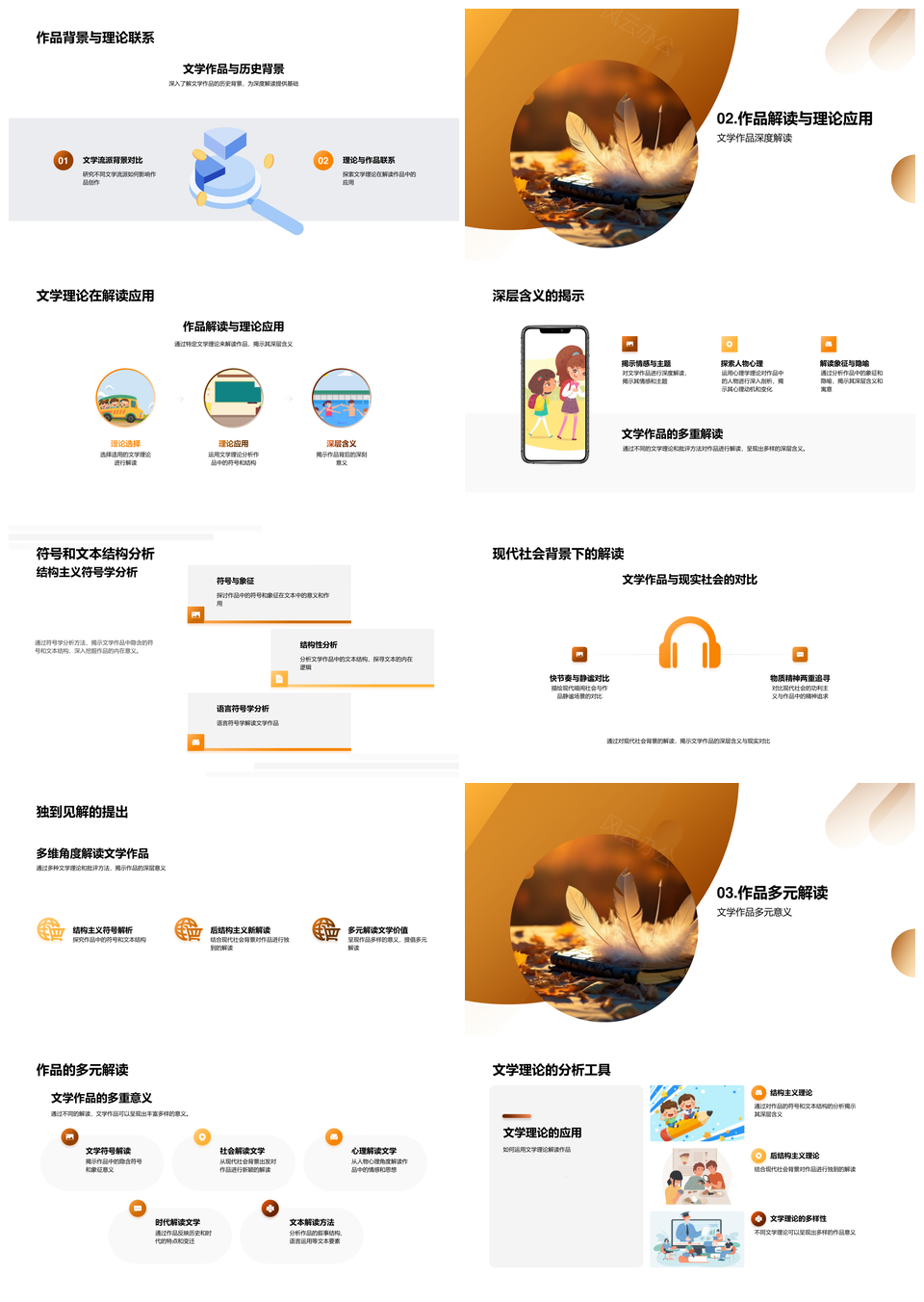 这是一张文学流派历史背景理论批评结构后结构符号PPT模板,包含文学流派、历史背景、理论、批评、结构、后结构、符号等主题内容,也可用作文学流派历史背景、流派历史背景理论、历史背景理论批评、背景理论批评结构、理论批评结构后结构、批评结构后结构符号、文学流派历史、流派历史背景、历史背景理论、背景理论批评、理论批评结构、批评结构后结构、结构后结构符号、文学流派、历史背景等PPT场景使用。 风云办公提供的文学流派历史背景理论批评结构后结构符号PPT模板,下载格式为pptx,一共32页,作品中文字及图均可以修改和编辑,图片更改请在作品中右键图片并更换,文字修改请直接点击文字进行修改。