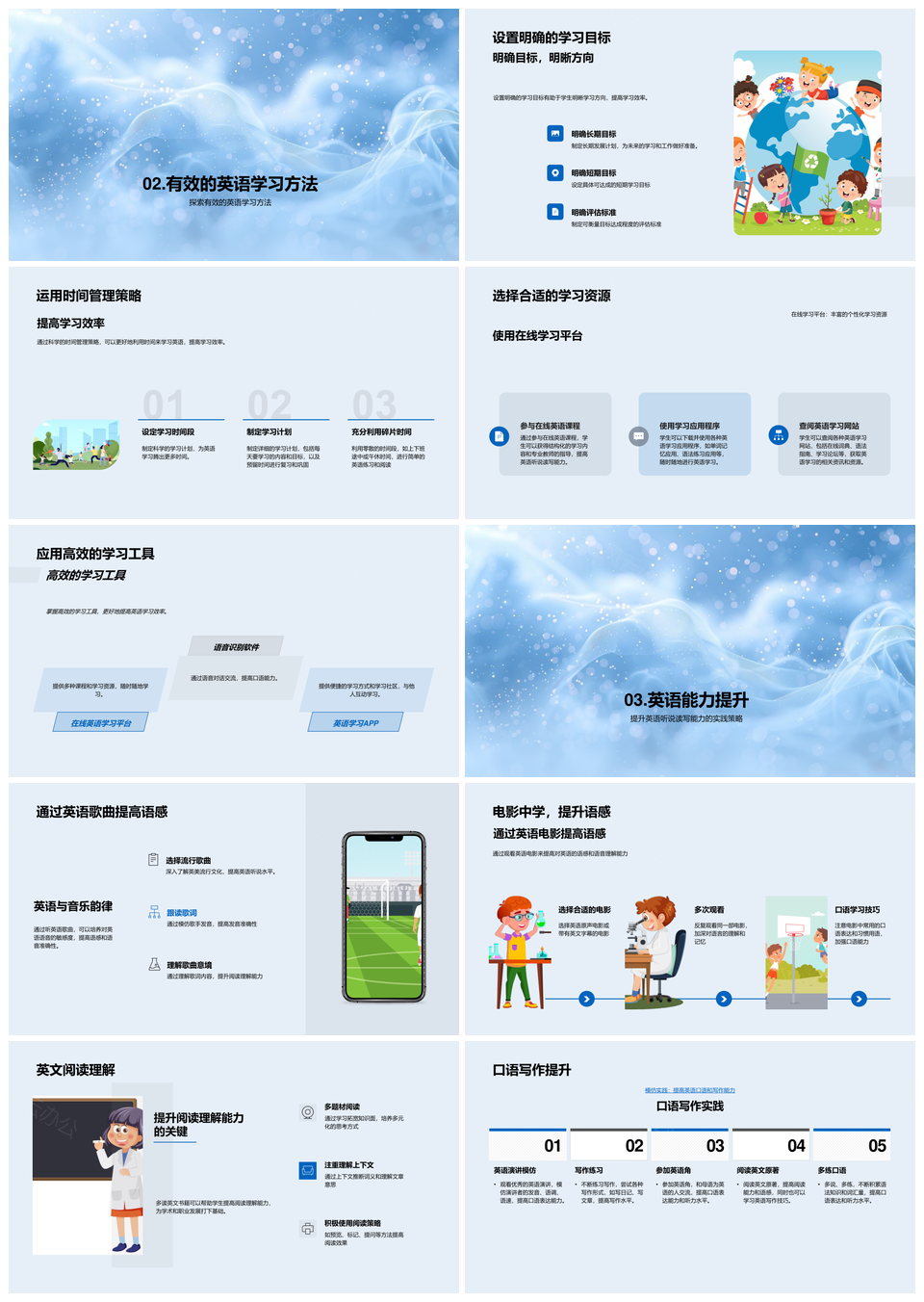 这是一张高效英语全球学习策略课堂课件学术职业国际交流时间管理PPT模板,包含高效英语、全球学习、策略课堂、课件、学术、职业、国际交流、时间管理等主题内容,也可用作高效英语全球学习策略、学习策略课堂课件学术、课堂课件学术职业、课件学术职业国际、学术职业国际交流、职业国际交流时间管理、国际交流时间管理、高效英语全球学习、英语全球学习策略、全球学习策略课堂、学习策略课堂课件、课堂课件学术、课件学术职业、学术职业国际、职业国际交流等PPT场景使用。 风云办公提供的高效英语全球学习策略课堂课件学术职业国际交流时间管理PPT模板,下载格式为pptx,一共27页,作品中文字及图均可以修改和编辑,图片更改请在作品中右键图片并更换,文字修改请直接点击文字进行修改。