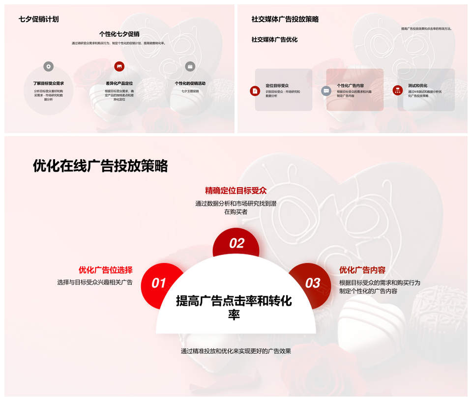 七夕电商心形巧克力营销策划产品定位促销策略目标受众数据分析PPT模板推荐