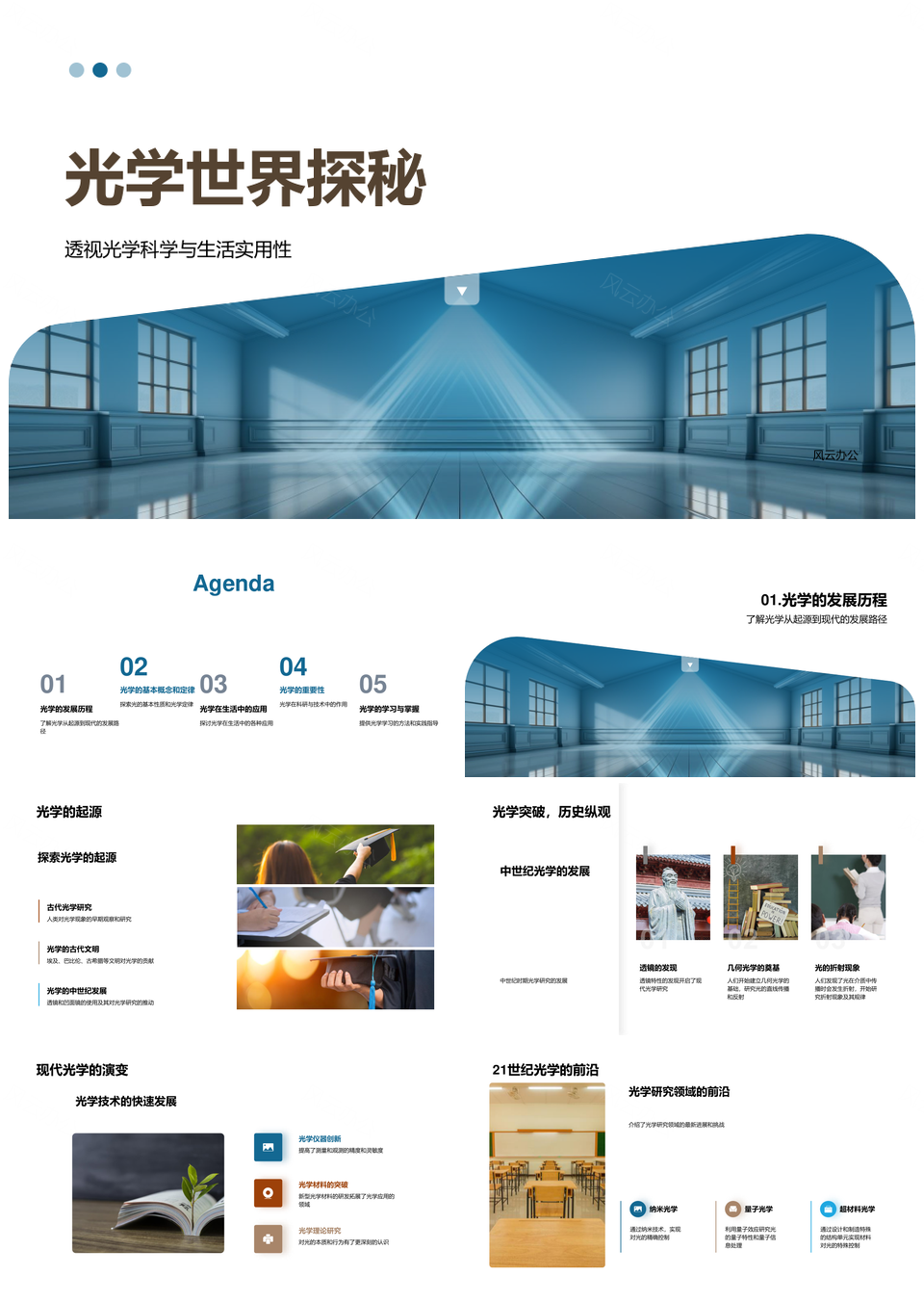 这是一张光学世界基本性质传播干涉衍射偏振棱镜PPT模板,包含光学世界、基本性质、传播、干涉、衍射、偏振、棱镜等主题内容,也可用作光学世界基本性质、世界基本性质传播、基本性质传播干涉、性质传播干涉衍射、传播干涉衍射偏振、干涉衍射偏振棱镜、世界基本性质、传播干涉衍射、干涉衍射偏振、衍射偏振棱镜、光学世界、基本性质、传播干涉、干涉衍射、衍射偏振等PPT场景使用。 风云办公提供的光学世界基本性质传播干涉衍射偏振棱镜PPT模板,下载格式为pptx,一共29页,作品中文字及图均可以修改和编辑,图片更改请在作品中右键图片并更换,文字修改请直接点击文字进行修改。