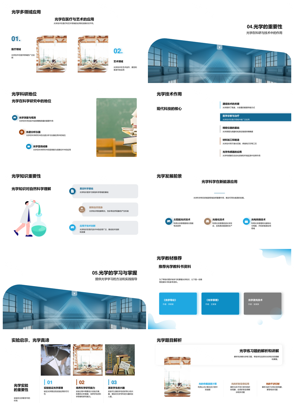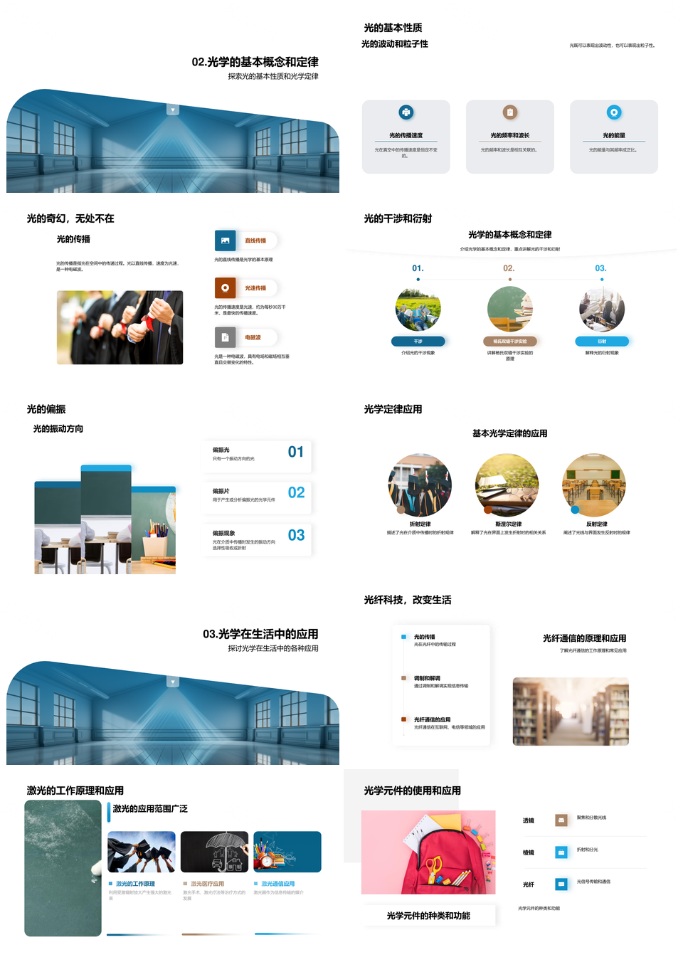 2025光学知识光性应用传播反射折射干涉衍射光电光纤PPT模板