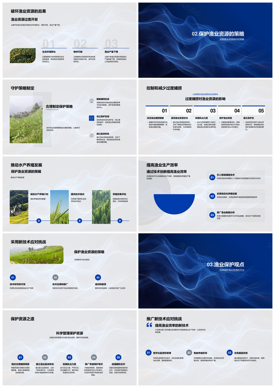 这是一张全球渔业资源保护与安全养殖新技术策略规划PPT模板,包含全球、渔业资源、保护、安全、养殖、新技术、策略规划等主题内容,也可用作全球渔业资源保护、渔业资源保护安全、资源保护安全养殖、安全养殖新技术、养殖新技术策略、新技术策略规划、全球渔业资源、渔业资源保护、资源保护安全、保护安全养殖、安全养殖新、养殖新技术、新技术策略、技术策略规划、全球渔业安全养殖等PPT场景使用。 风云办公提供的全球渔业资源保护与安全养殖新技术策略规划PPT模板,下载格式为pptx,一共33页,作品中文字及图均可以修改和编辑,图片更改请在作品中右键图片并更换,文字修改请直接点击文字进行修改。