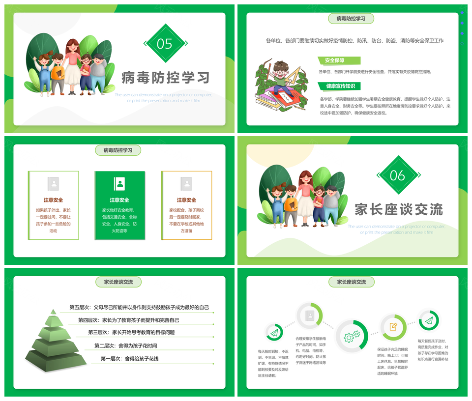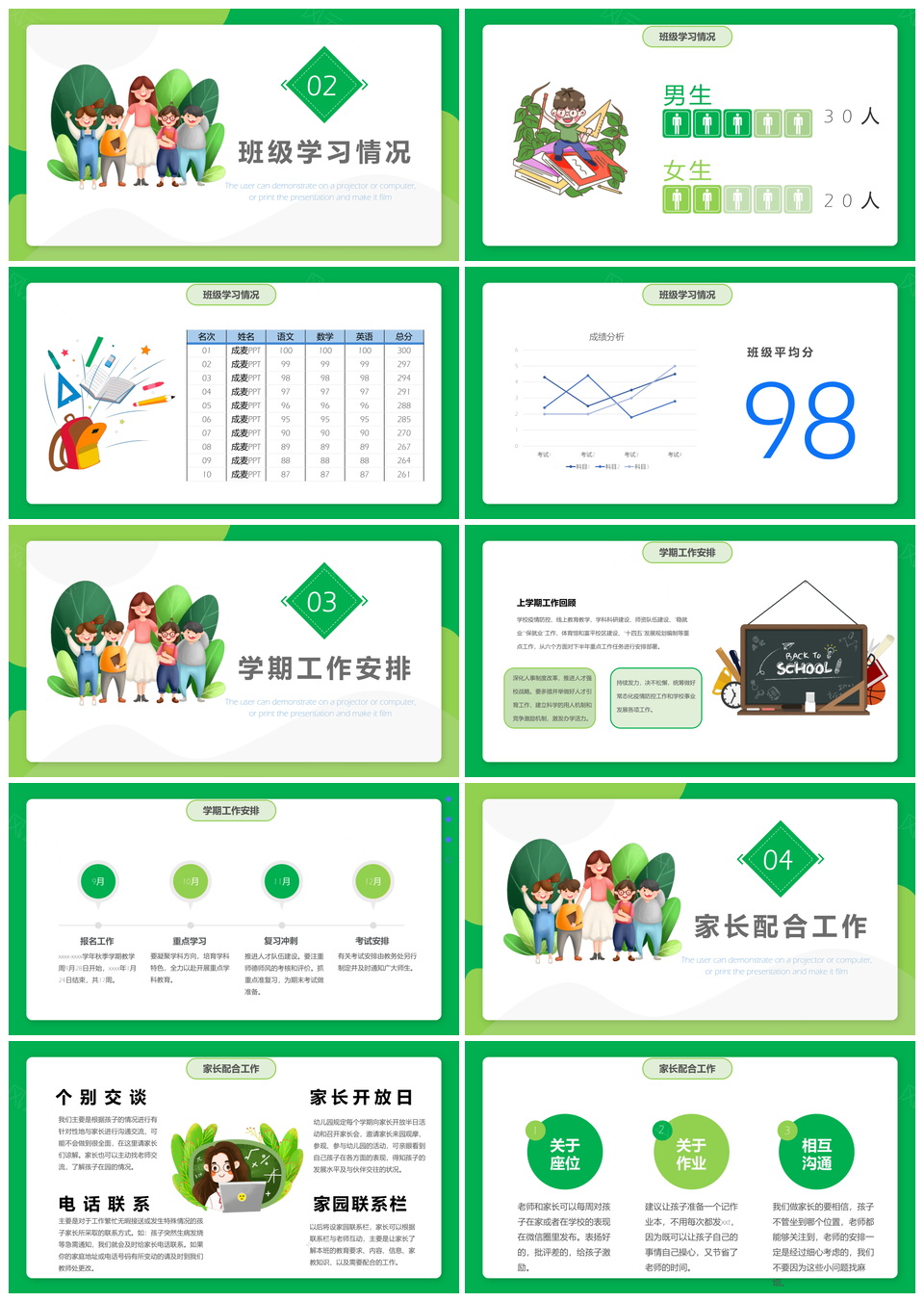 2025绿色期中期末考试家长会班会活动汇报PPT模板