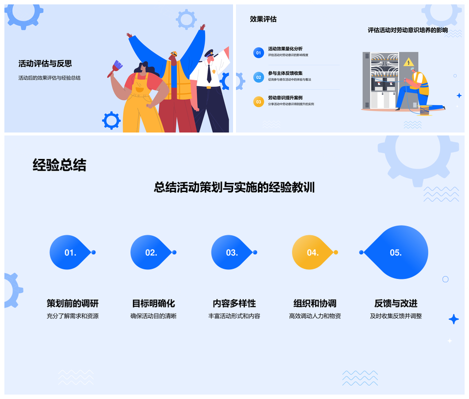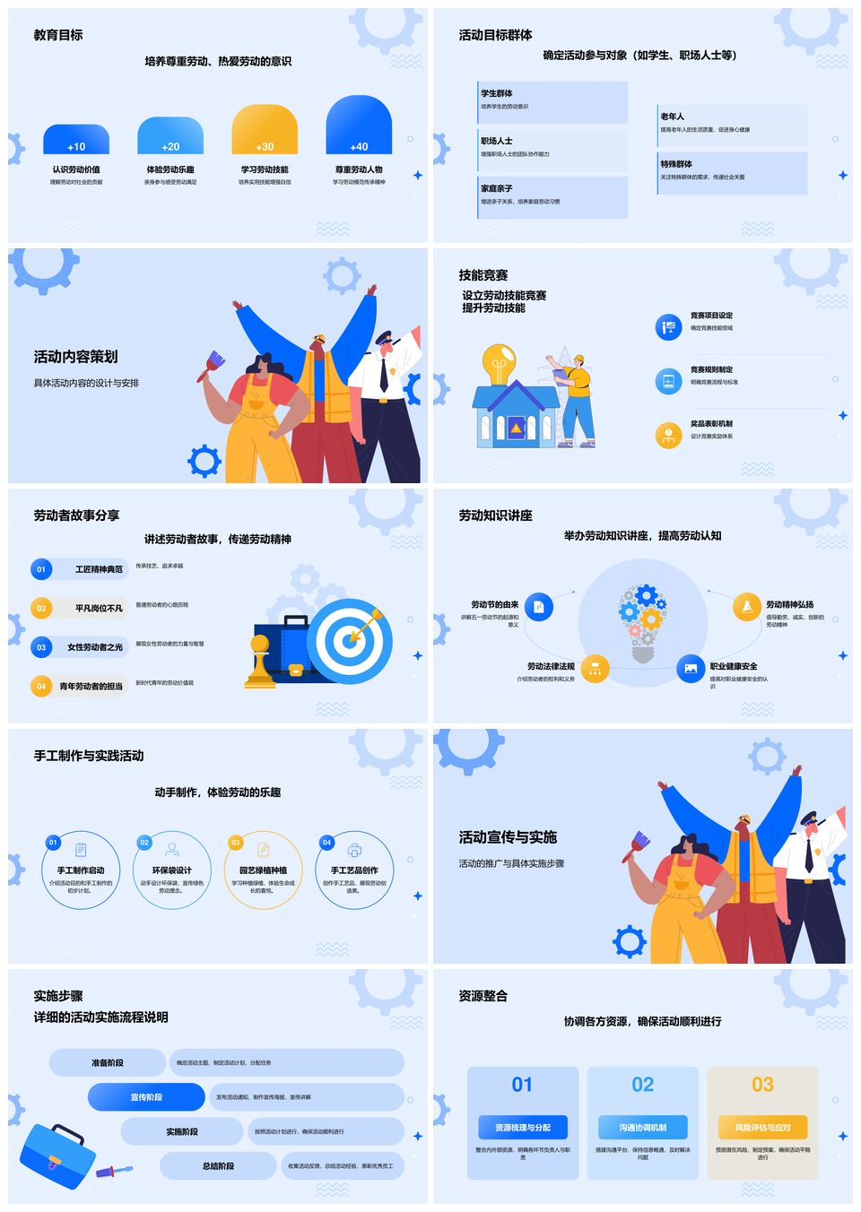 这是一张五一劳动节教育活动技能竞赛劳动者故事PPT模板,包含五一劳动节、教育活动、技能竞赛、劳动者、故事等主题内容,也可用作五一劳动节教育活动技能竞赛劳动者、教育活动技能竞赛劳动者故事、五一劳动节教育活动技能竞赛、教育活动技能竞赛劳动者、技能竞赛劳动者故事、五一劳动节技能竞赛劳动者、教育活动技能竞赛故事、五一劳动节劳动者故事、五一劳动节教育活动、五一劳动节技能竞赛、教育活动技能竞赛、技能竞赛劳动者、劳动者故事、教育活动劳动者、五一劳动节劳动者等PPT场景使用。 风云办公提供的五一劳动节教育活动技能竞赛劳动者故事PPT模板,下载格式为pptx,一共21页,作品中文字及图均可以修改和编辑,图片更改请在作品中右键图片并更换,文字修改请直接点击文字进行修改。
