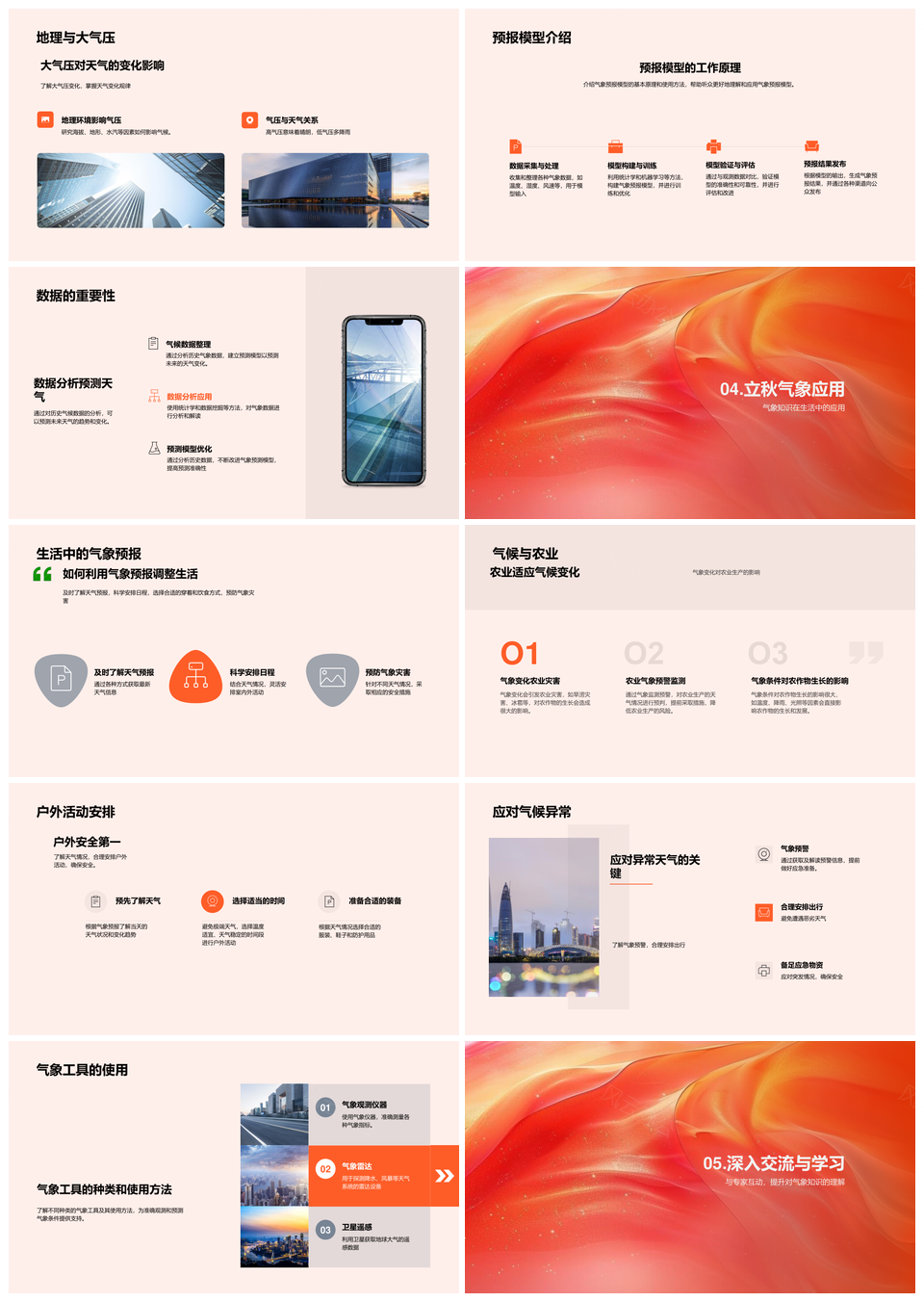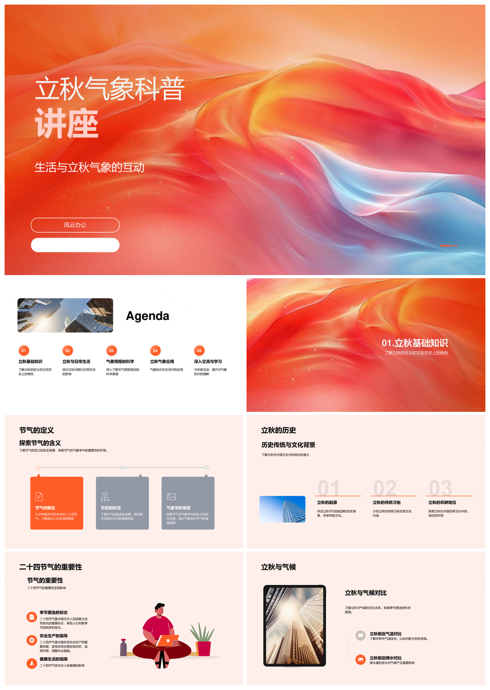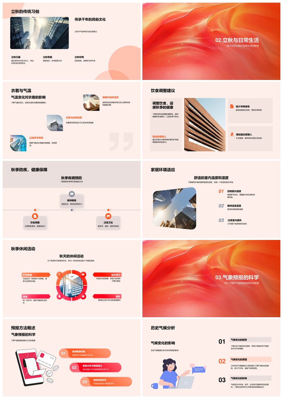 这是一张2025立秋气象科普气候变化与健康调整PPT模板,包含2025、立秋、气象科普、气候变化、健康调整等主题内容,也可用作2025立秋气象科普、立秋气象科普气候变化、气象科普气候变化健康、科普气候变化健康调整、立秋气象科普、气象科普气候变化、气候变化健康调整、科普气候变化健康、2025立秋气象、立秋气候变化健康、2025立秋、立秋气象、气象科普、科普气候变化、气候变化健康等PPT场景使用。 风云办公提供的2025立秋气象科普气候变化与健康调整PPT模板,下载格式为pptx,一共33页,作品中文字及图均可以修改和编辑,图片更改请在作品中右键图片并更换,文字修改请直接点击文字进行修改。