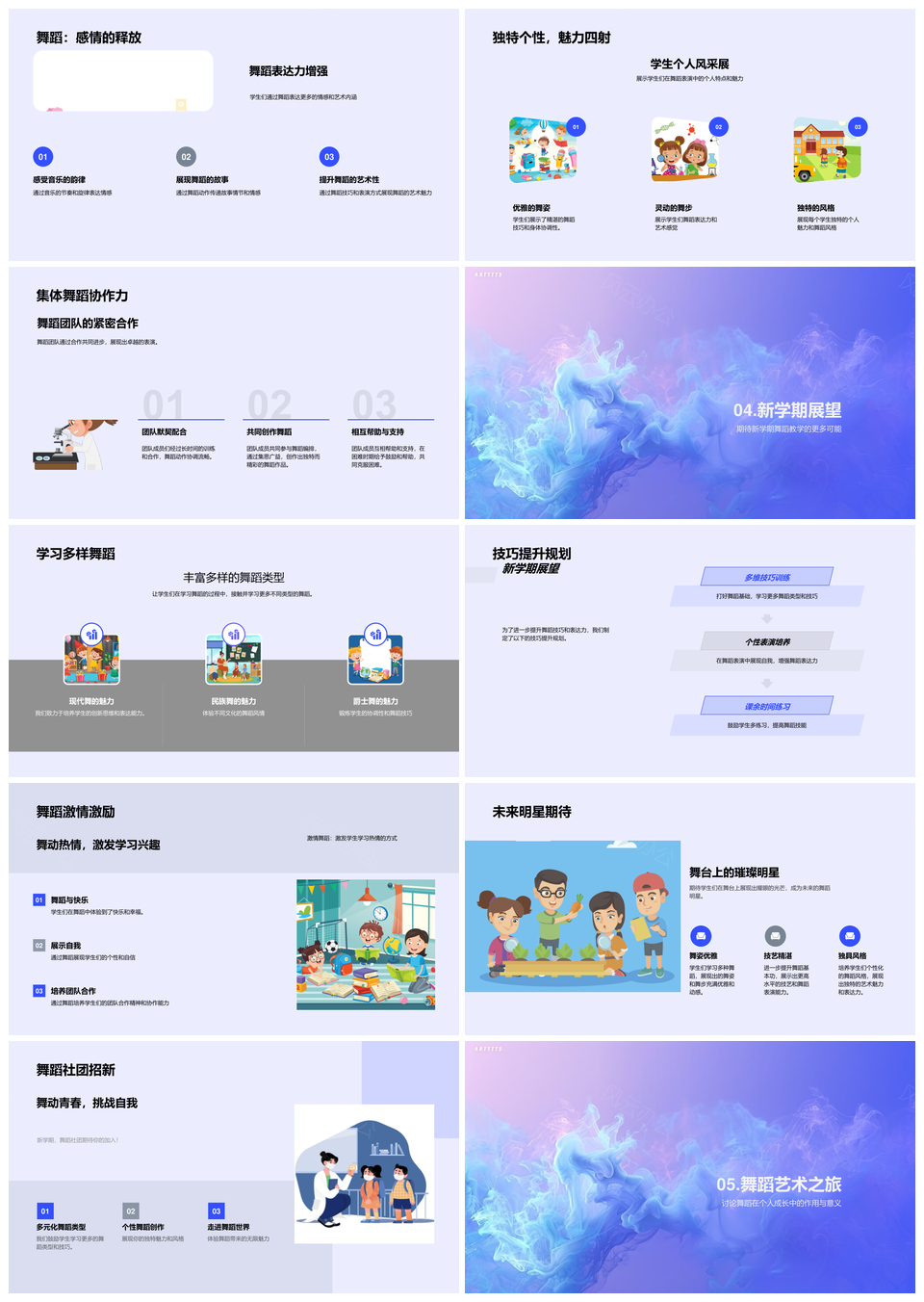 这是一张舞蹈年度成果展技能成长艺术之旅启新程PPT模板,包含舞蹈、年度、成果展、技能、成长、艺术之旅、新程等主题内容,也可用作舞蹈年度成果展技能、年度成果展技能成长、成果展技能成长艺术、技能成长艺术之旅、成长艺术之旅启新程、舞蹈技能成长艺术、舞蹈年度成果展、年度成果展技能、成果展技能成长、技能成长艺术、成长艺术之旅、艺术之旅启新程、年度成果展、成果展技能、技能成长等PPT场景使用。 风云办公提供的舞蹈年度成果展技能成长艺术之旅启新程PPT模板,下载格式为pptx,一共33页,作品中文字及图均可以修改和编辑,图片更改请在作品中右键图片并更换,文字修改请直接点击文字进行修改。