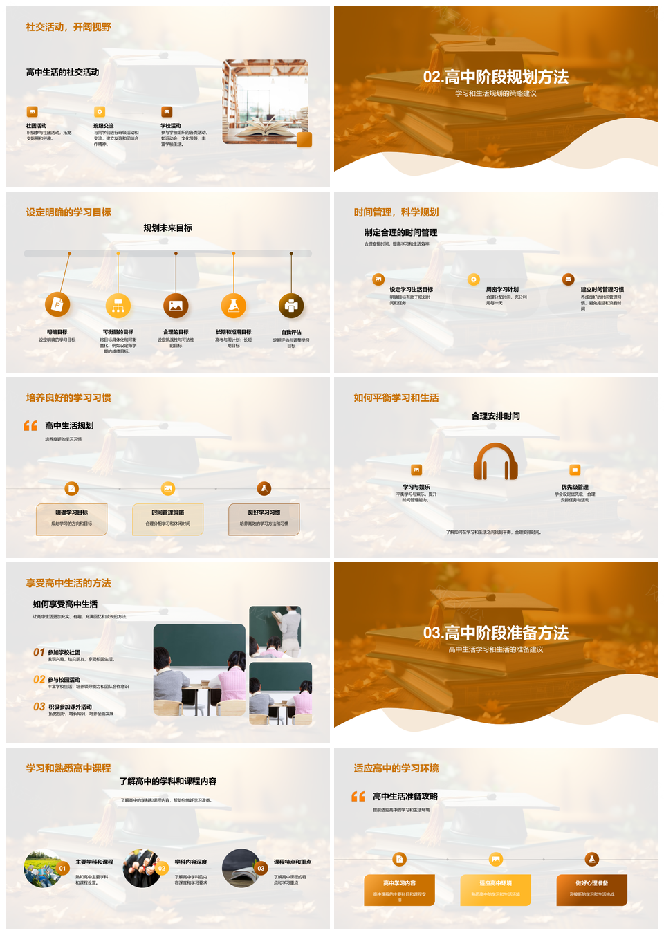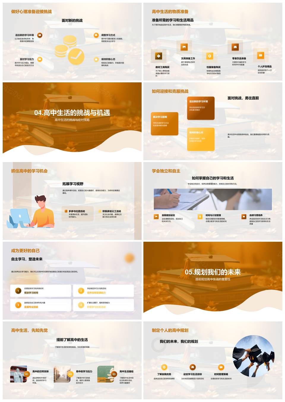 高中学习规划时间管理习惯课程环境社交心理毕业准备PPT模板推荐