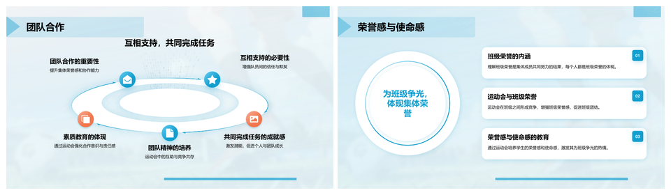 蓝色商务校园运动会班级师生亲子项目安全目标PPT模板推荐