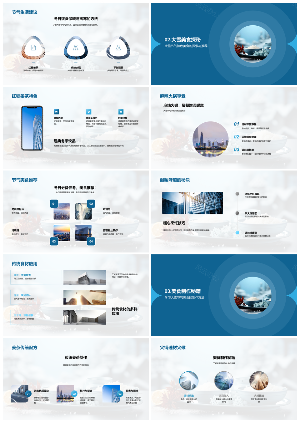 风云办公提供的大雪暖心传统美食红糖姜茶麻辣火锅PPT模板,下载格式为pptx,一共33页,作品中文字及图均可以修改和编辑,图片更改请在作品中右键图片并更换,文字修改请直接点击文字进行修改。