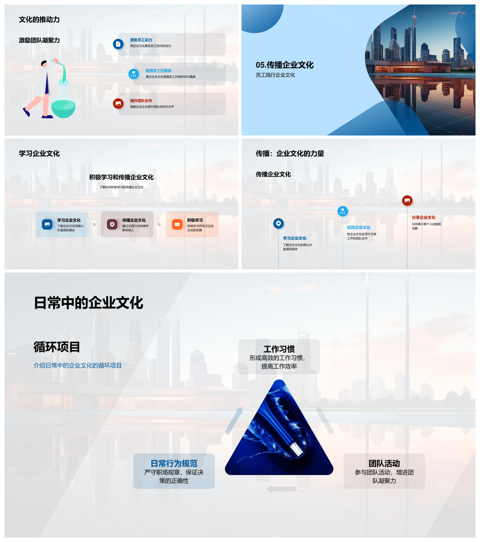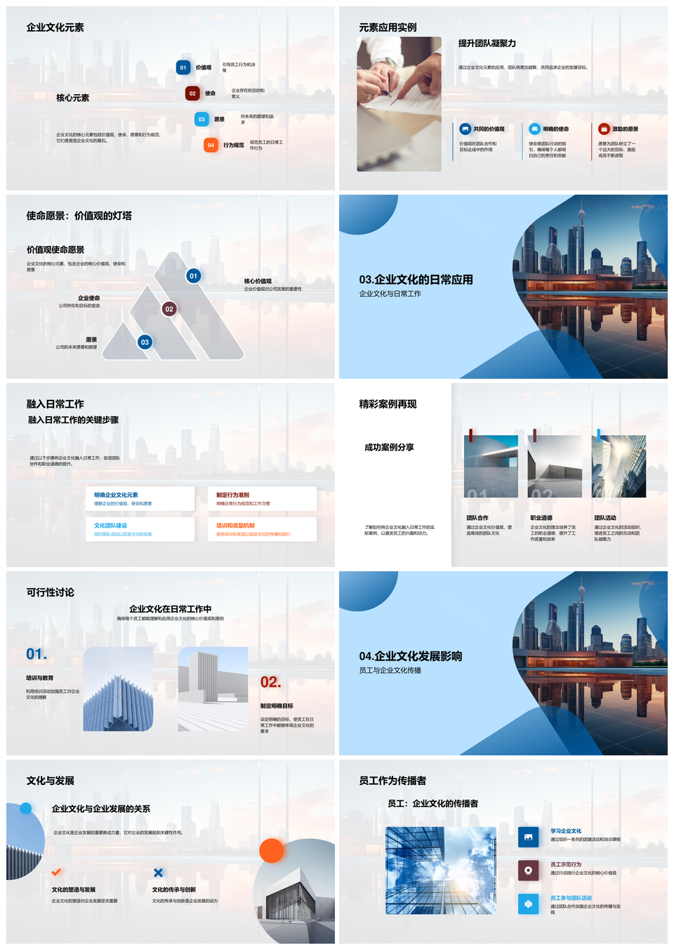 这是一张打造卓越企业文化理念价值观使命愿景团队协作PPT模板,包含卓越、企业文化、理念、价值观、使命、愿景、团队协作等主题内容,也可用作打造卓越企业文化、卓越企业文化理念、企业文化理念价值观、文化理念价值观使命、理念价值观使命愿景、价值观使命愿景团队、使命愿景团队协作、打造卓越企业、卓越企业文化、企业文化理念、文化理念价值观、理念价值观使命、价值观使命愿景、使命愿景团队、愿景团队协作等PPT场景使用。 风云办公提供的打造卓越企业文化理念价值观使命愿景团队协作PPT模板,下载格式为pptx,一共23页,作品中文字及图均可以修改和编辑,图片更改请在作品中右键图片并更换,文字修改请直接点击文字进行修改。