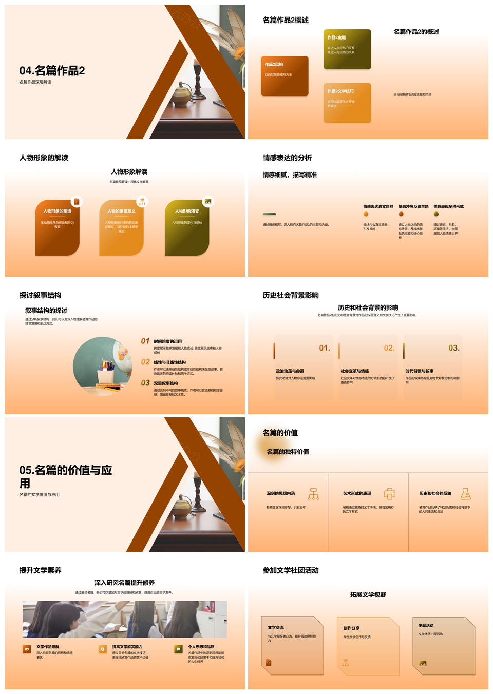 风云办公提供的高中生经典名篇文学素养深层解析技巧PPT模板,下载格式为pptx,一共29页,作品中文字及图均可以修改和编辑,图片更改请在作品中右键图片并更换,文字修改请直接点击文字进行修改。
