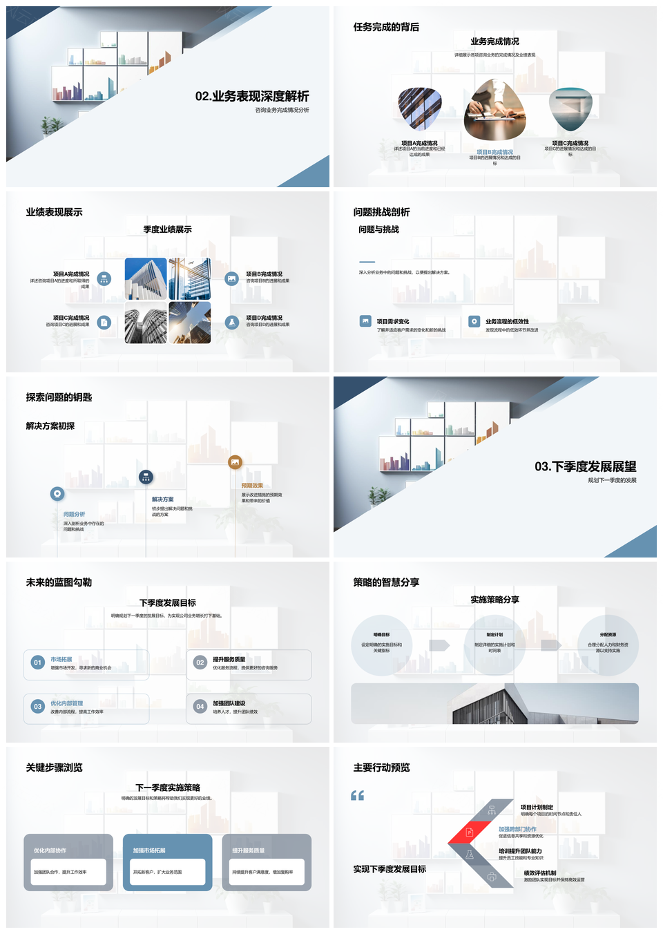 咨询业务策略调整一季度回顾项目举措挑战方案展望图表PPT模板推荐