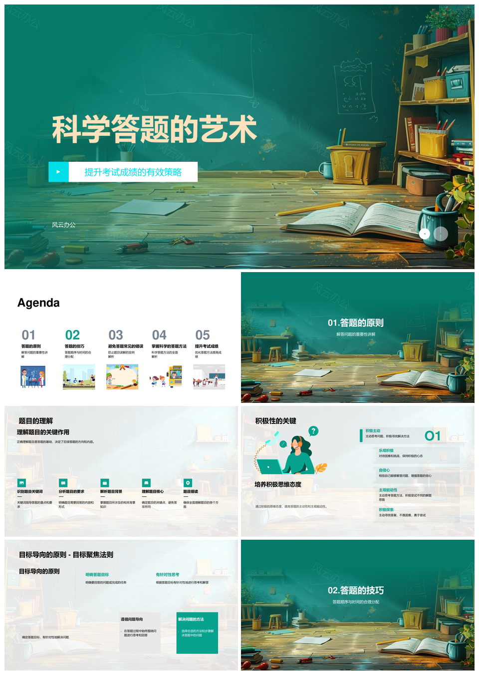 风云办公提供的科学答题策略目标顺序时间方法避误PPT模板,下载格式为pptx,一共23页,作品中文字及图均可以修改和编辑,图片更改请在作品中右键图片并更换,文字修改请直接点击文字进行修改。