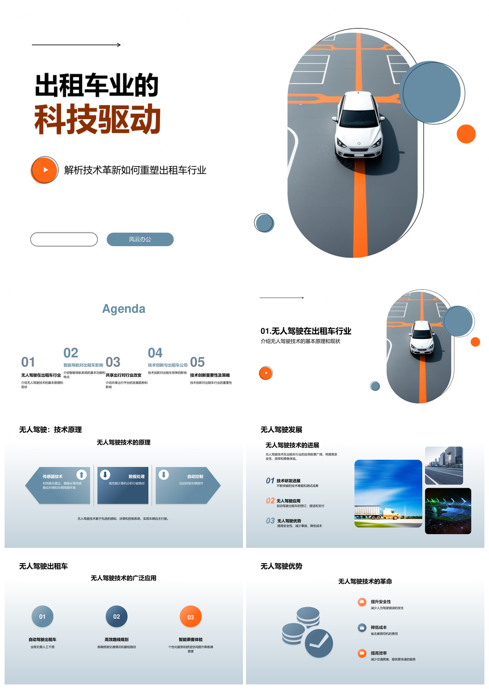 风云办公提供的未来出租车无人驾驶技术驱动共享出行PPT模板,下载格式为pptx,一共26页,作品中文字及图均可以修改和编辑,图片更改请在作品中右键图片并更换,文字修改请直接点击文字进行修改。