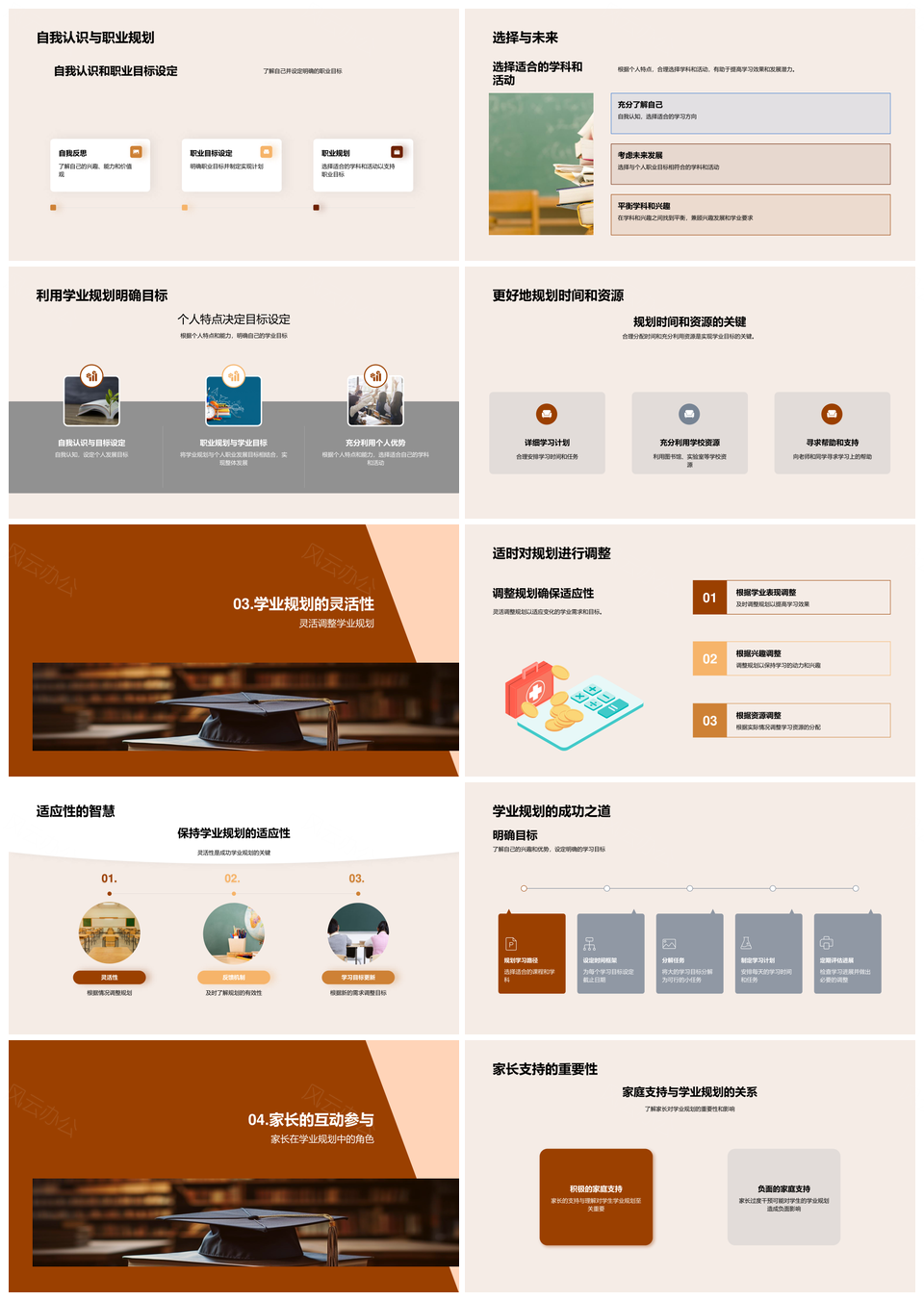 风云办公提供的学业规划助力高效学习与职业发展PPT模板,下载格式为pptx,一共24页,作品中文字及图均可以修改和编辑,图片更改请在作品中右键图片并更换,文字修改请直接点击文字进行修改。