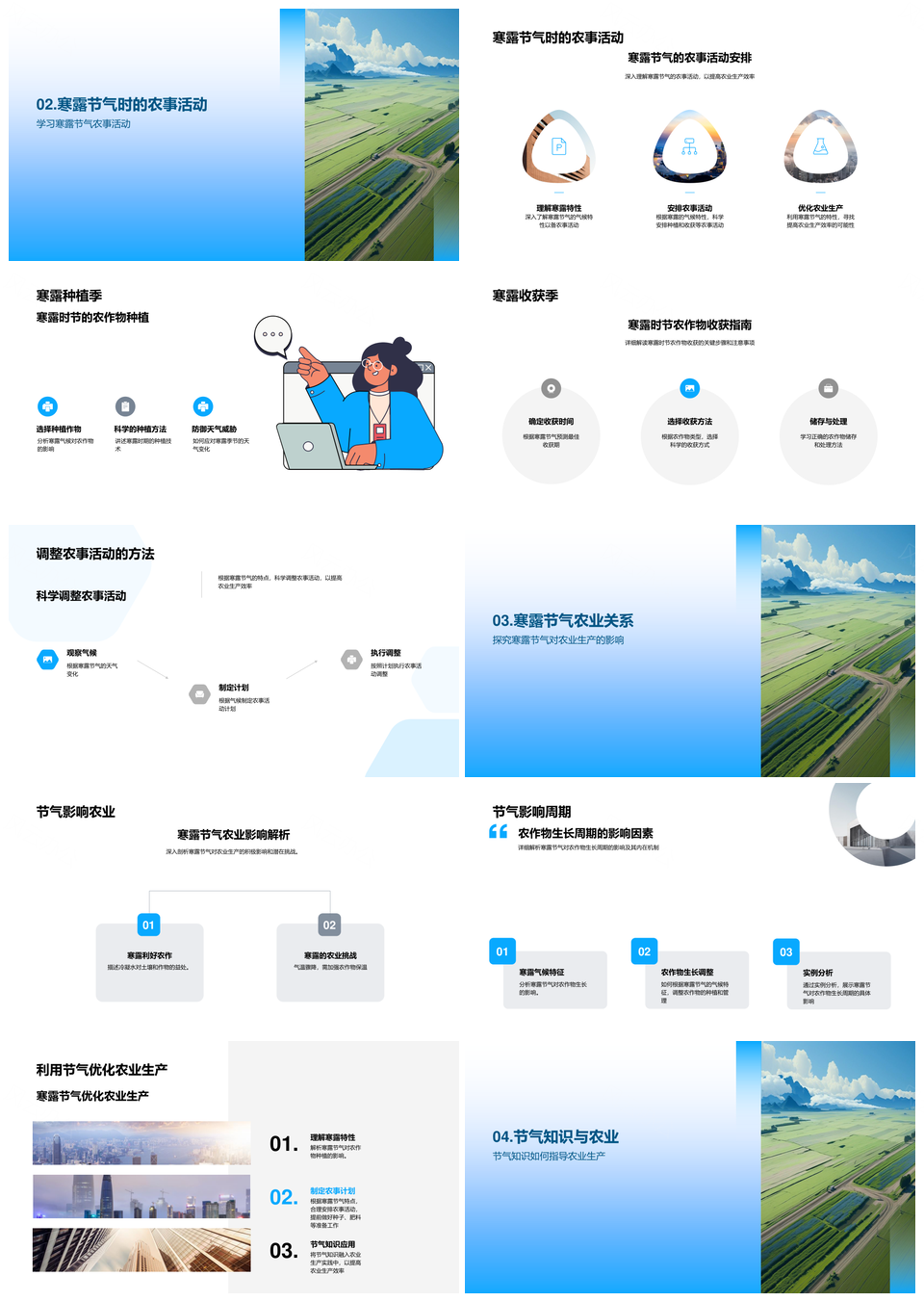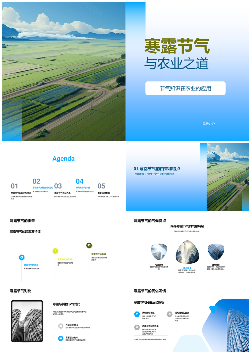 风云办公提供的寒露节气农业气候与农事作物周期PPT模板,下载格式为pptx,一共25页,作品中文字及图均可以修改和编辑,图片更改请在作品中右键图片并更换,文字修改请直接点击文字进行修改。