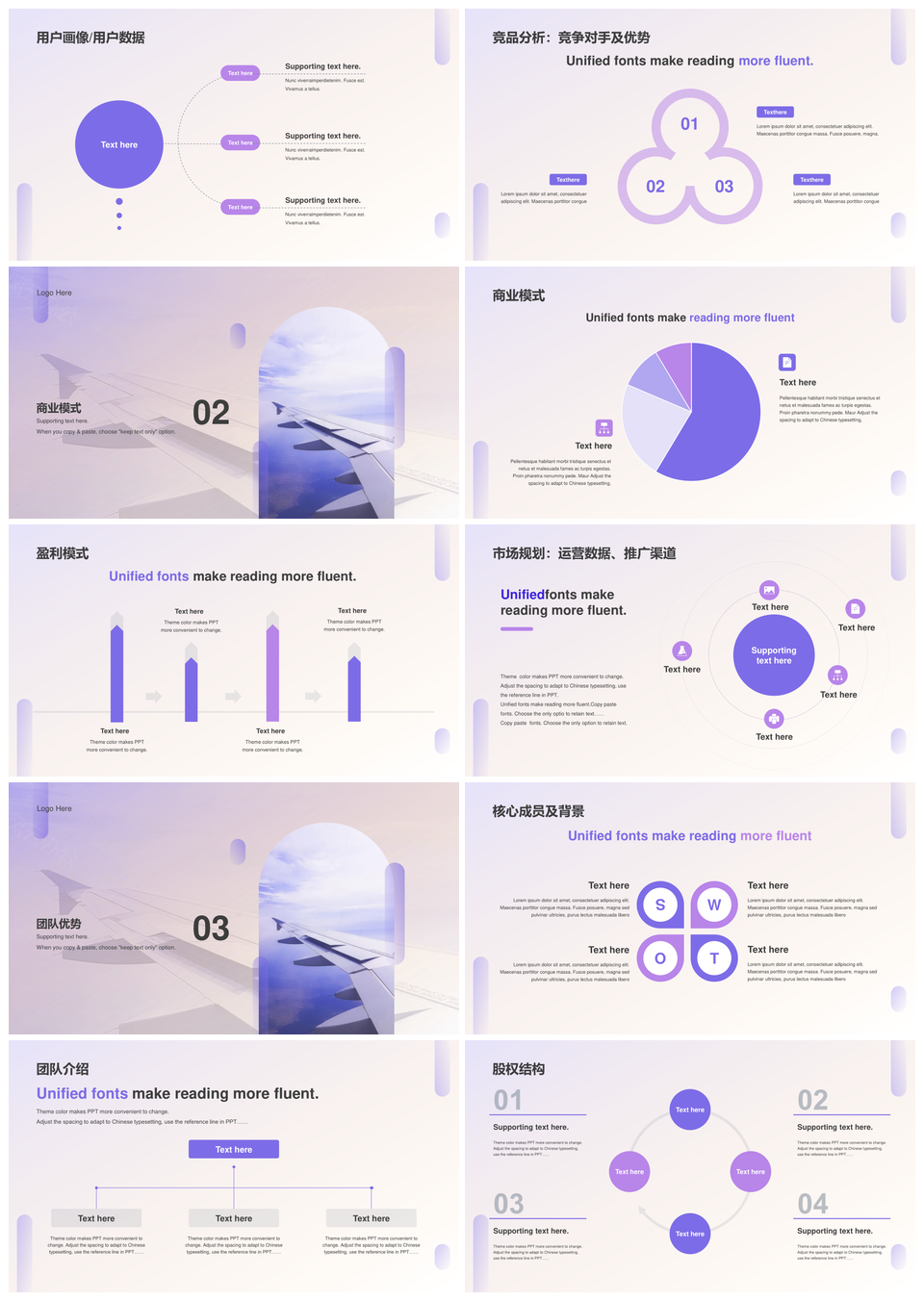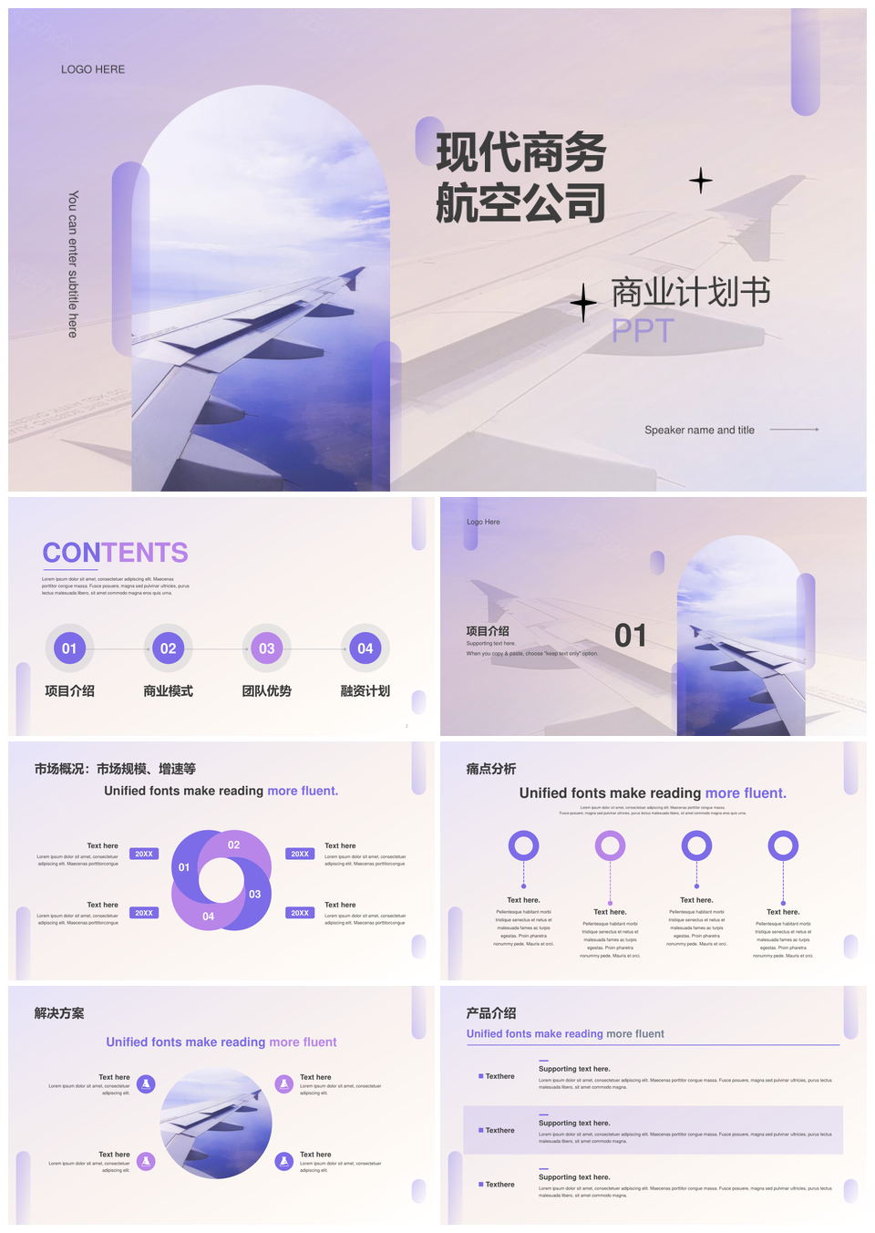 风云办公提供的紫色商务现代航空交通商业计划书PPT模板,下载格式为pptx,一共21页,作品中文字及图均可以修改和编辑,图片更改请在作品中右键图片并更换,文字修改请直接点击文字进行修改。