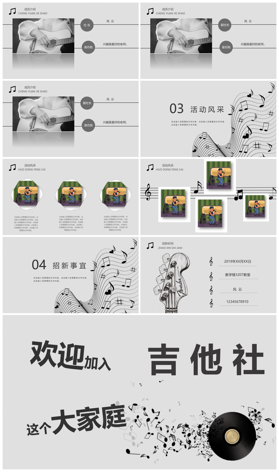 大学生吉他社招新PPT模板推荐