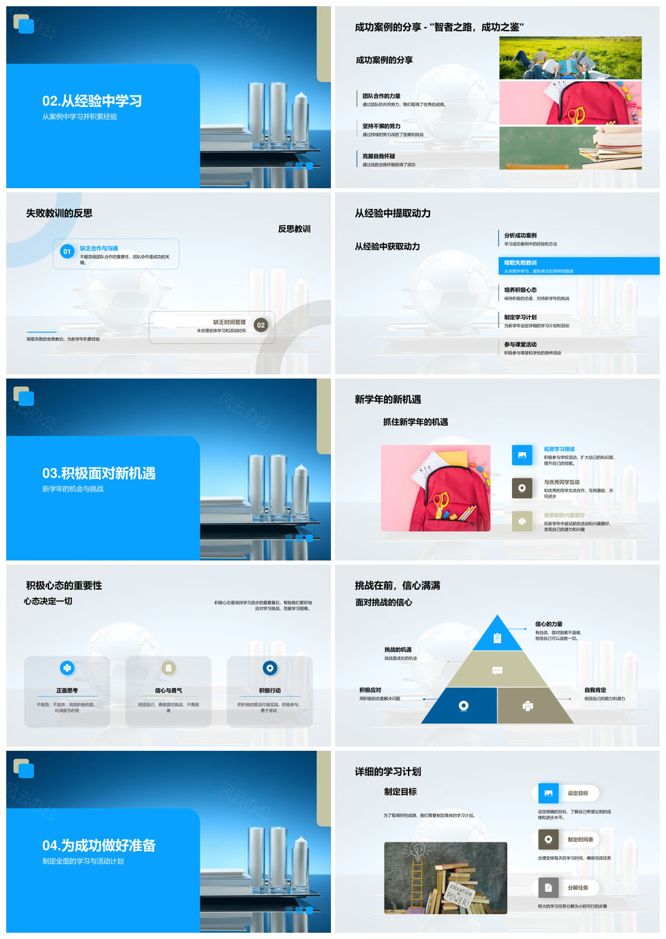 新学年总结展望师生案例教训书策启新程PPT模板推荐