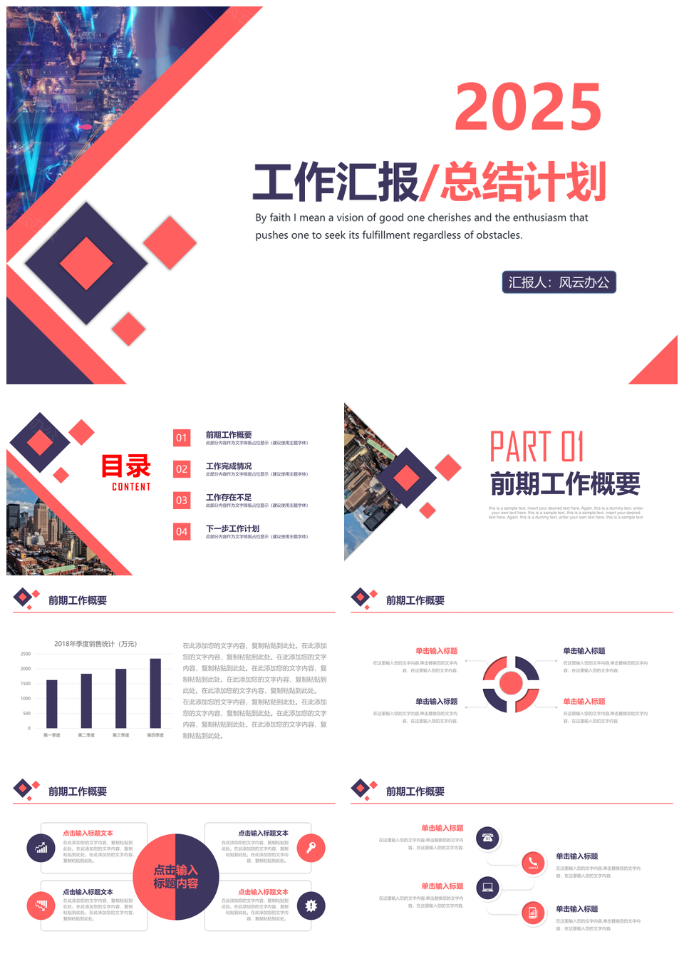 2025红色简约工作计划总结汇报PPT可编辑模板