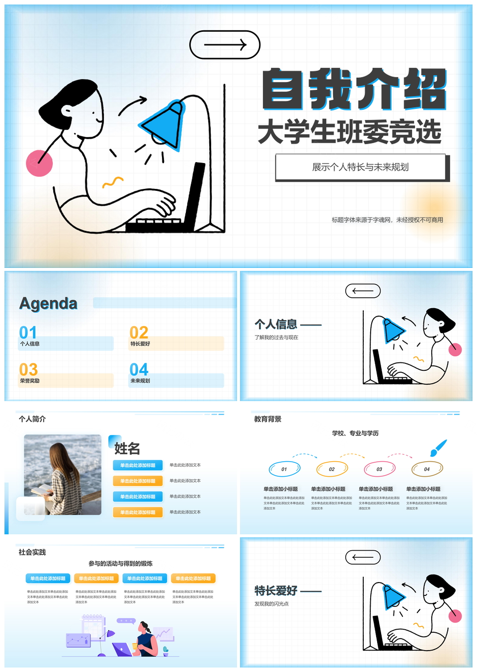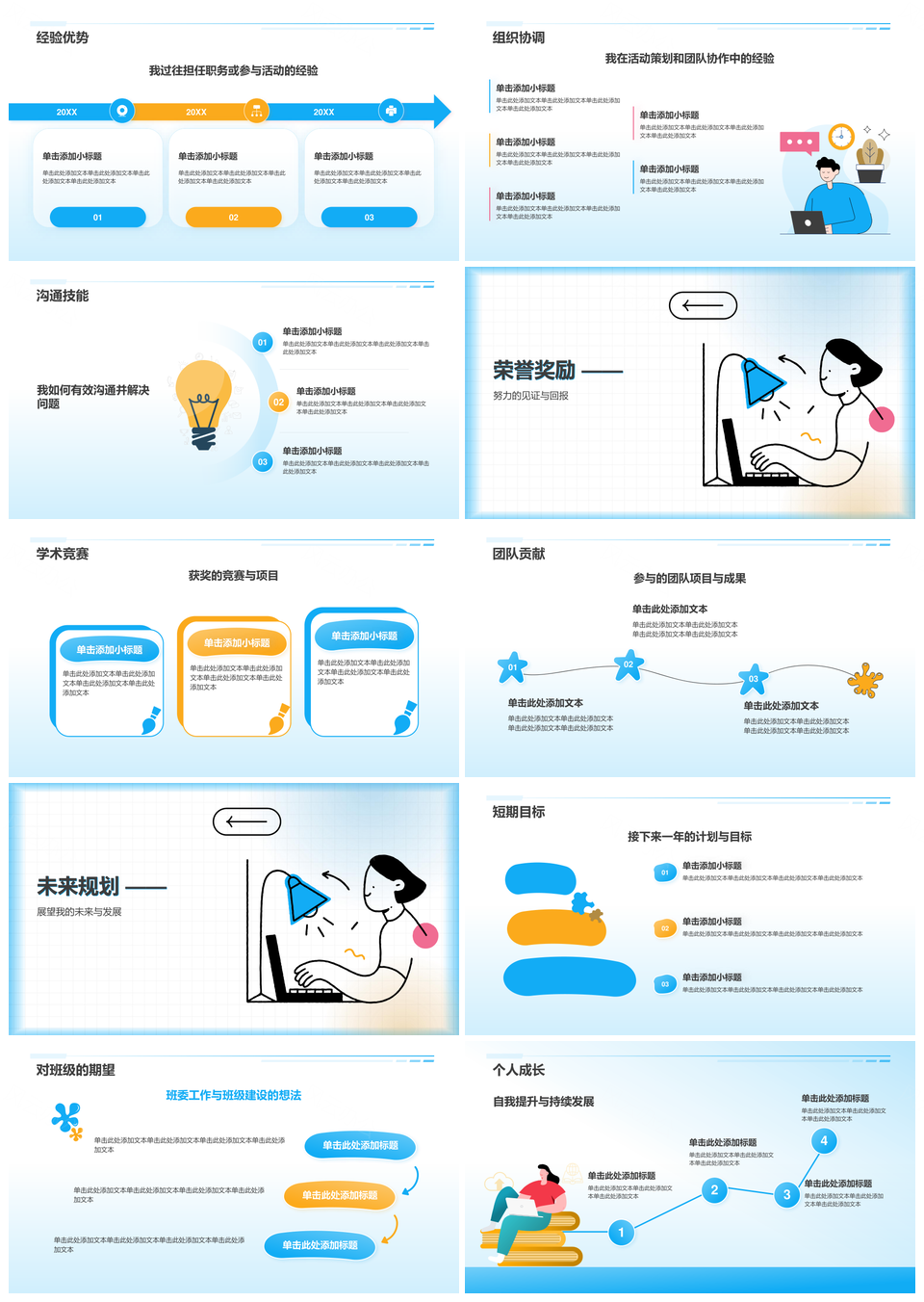大学生班委竞选自我介绍PPT框架内容资料特长荣誉规划推荐