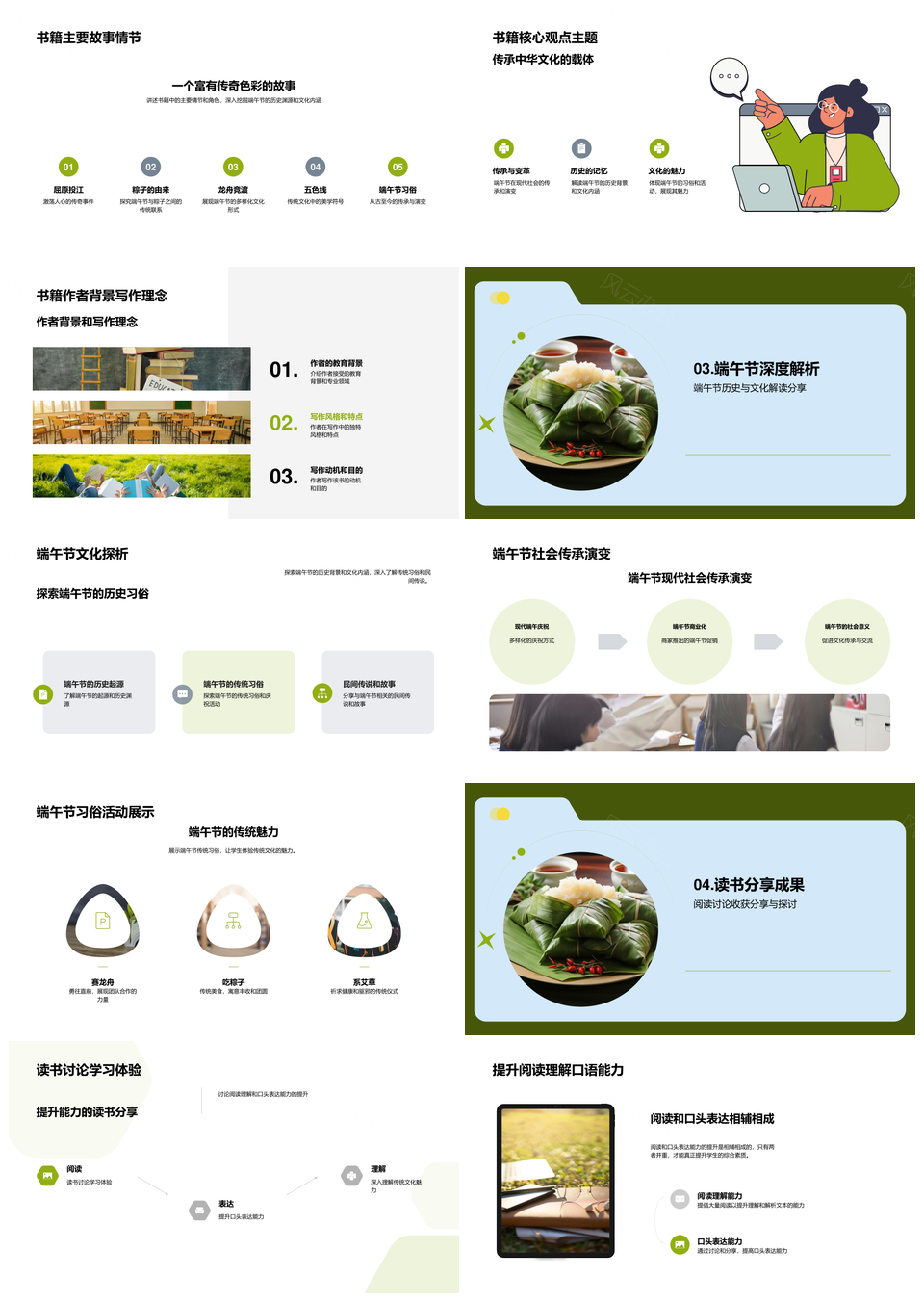 风云办公提供的端午读书分享探讨传统龙舟文化PPT模板,下载格式为pptx,一共23页,作品中文字及图均可以修改和编辑,图片更改请在作品中右键图片并更换,文字修改请直接点击文字进行修改。