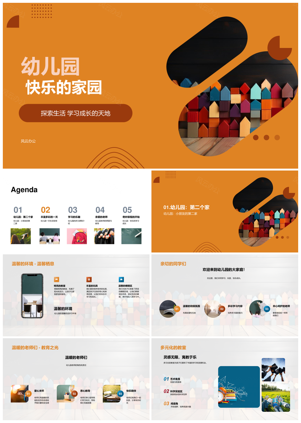 风云办公提供的幼儿园快乐家园探索学习成长安全教育PPT模板,下载格式为pptx,一共33页,作品中文字及图均可以修改和编辑,图片更改请在作品中右键图片并更换,文字修改请直接点击文字进行修改。