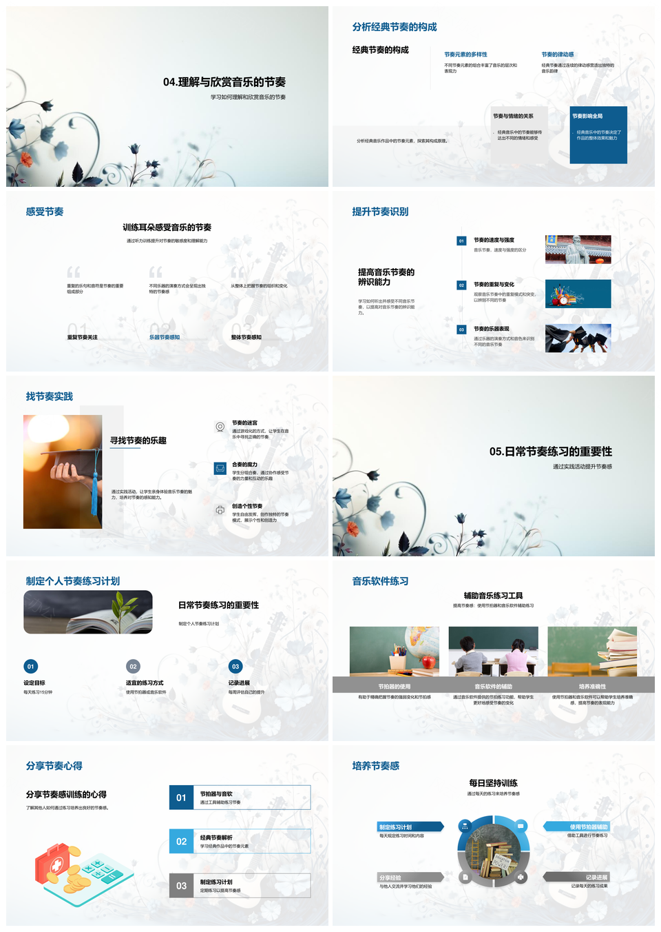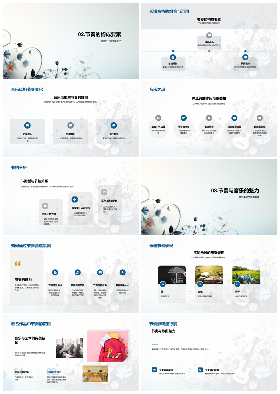 风云办公提供的音乐节奏构成要素与风格变化练习PPT模板,下载格式为pptx,一共28页,作品中文字及图均可以修改和编辑,图片更改请在作品中右键图片并更换,文字修改请直接点击文字进行修改。