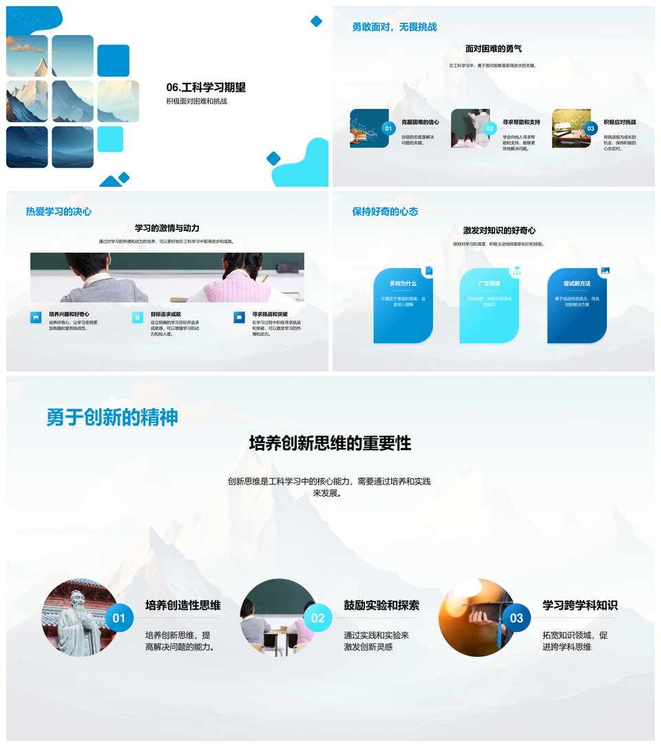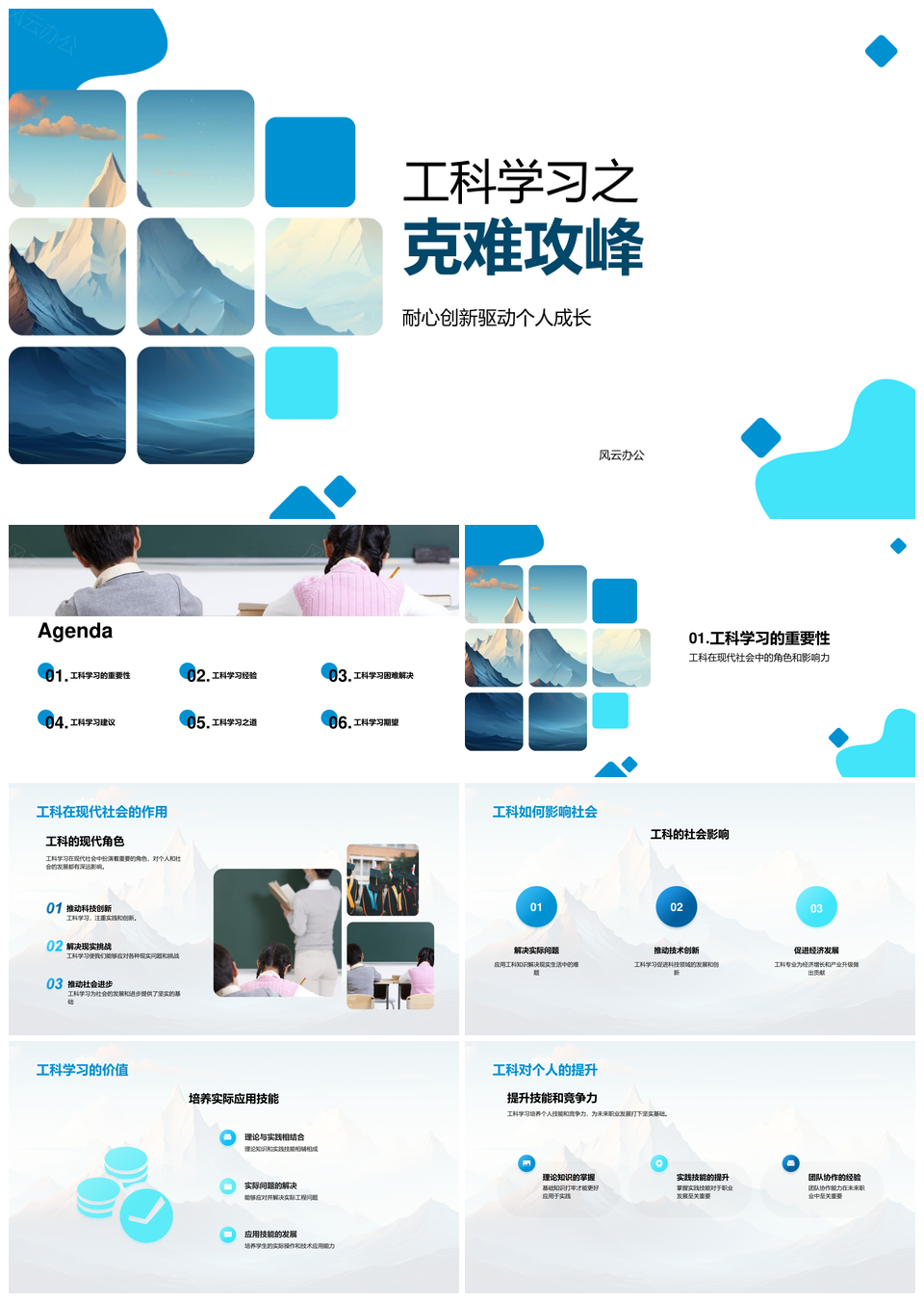风云办公提供的工科克难攻峰耐心创新攀峰成长PPT模板,下载格式为pptx,一共33页,作品中文字及图均可以修改和编辑,图片更改请在作品中右键图片并更换,文字修改请直接点击文字进行修改。