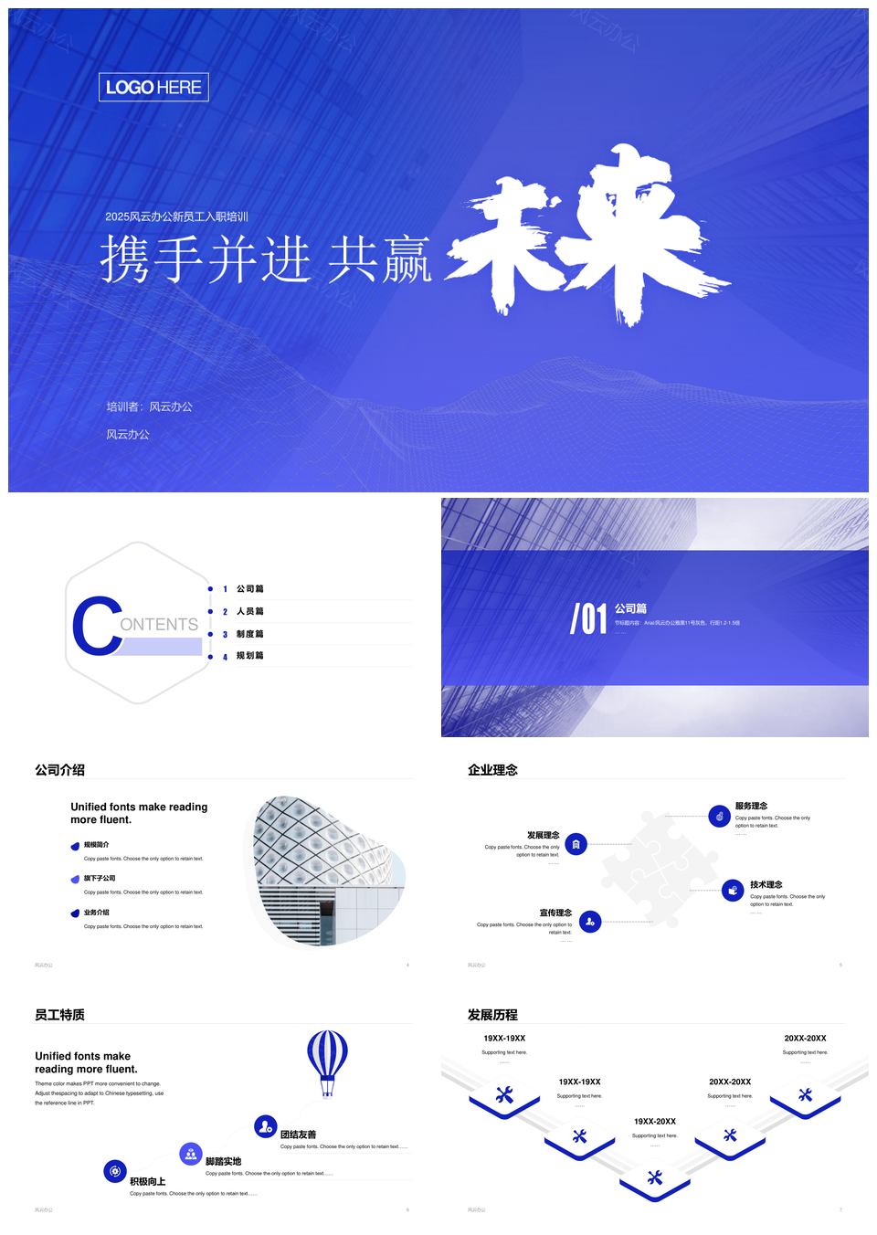 2025课件蓝色公司企业单位新员工入职培训手册PPT模板