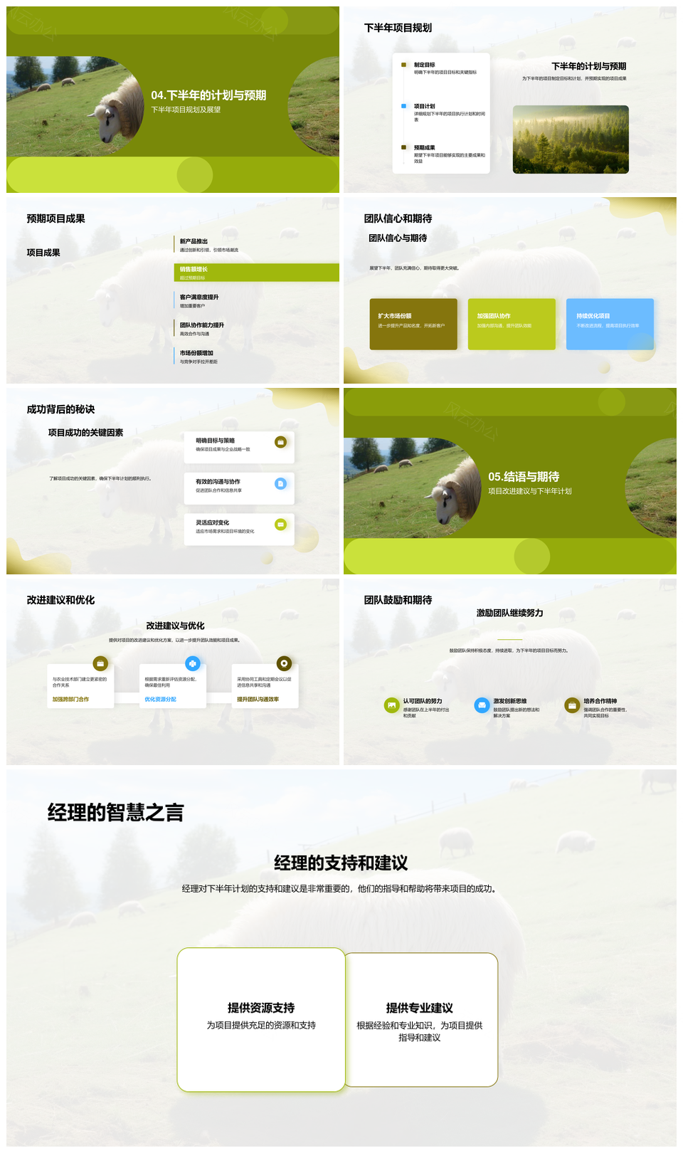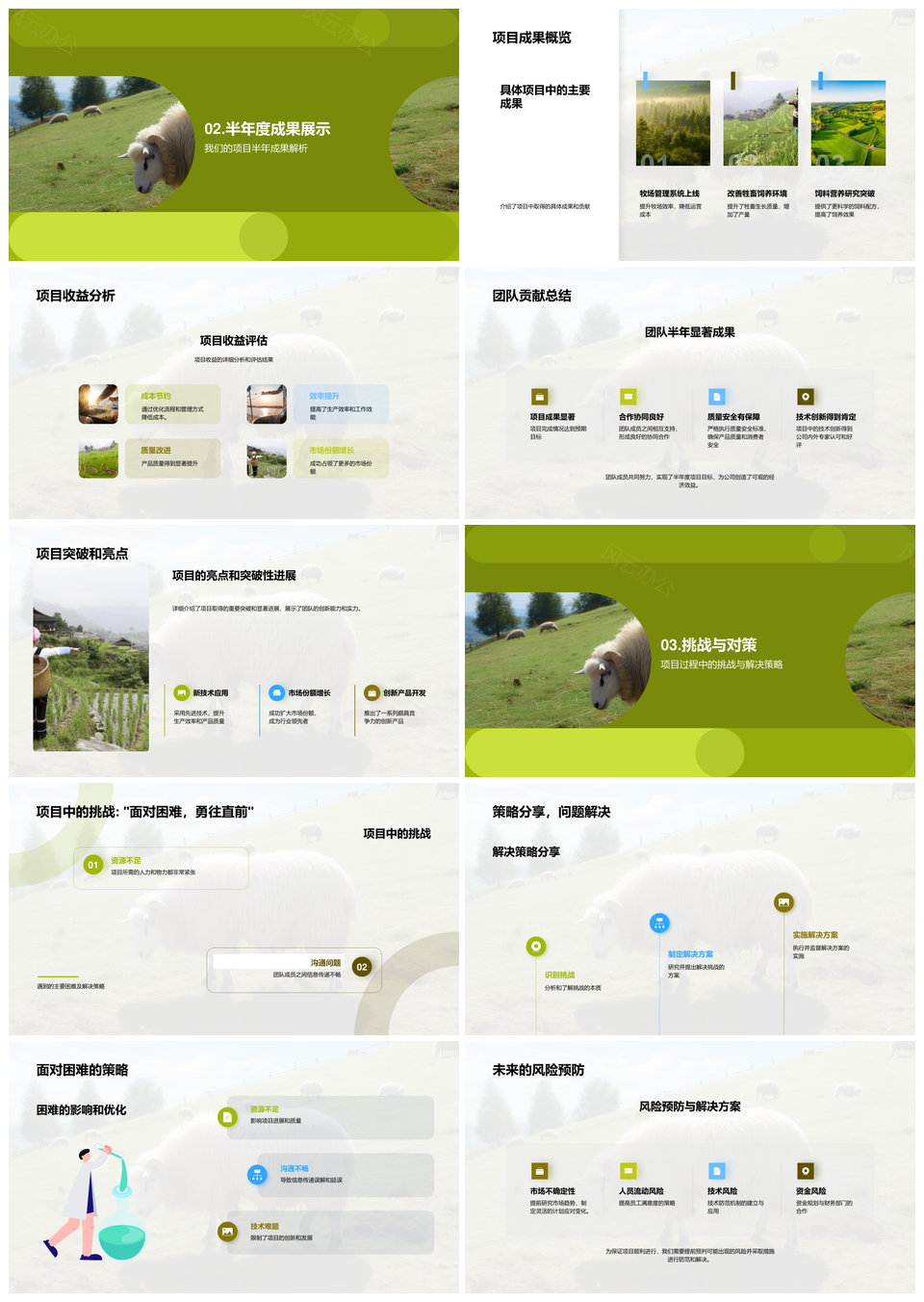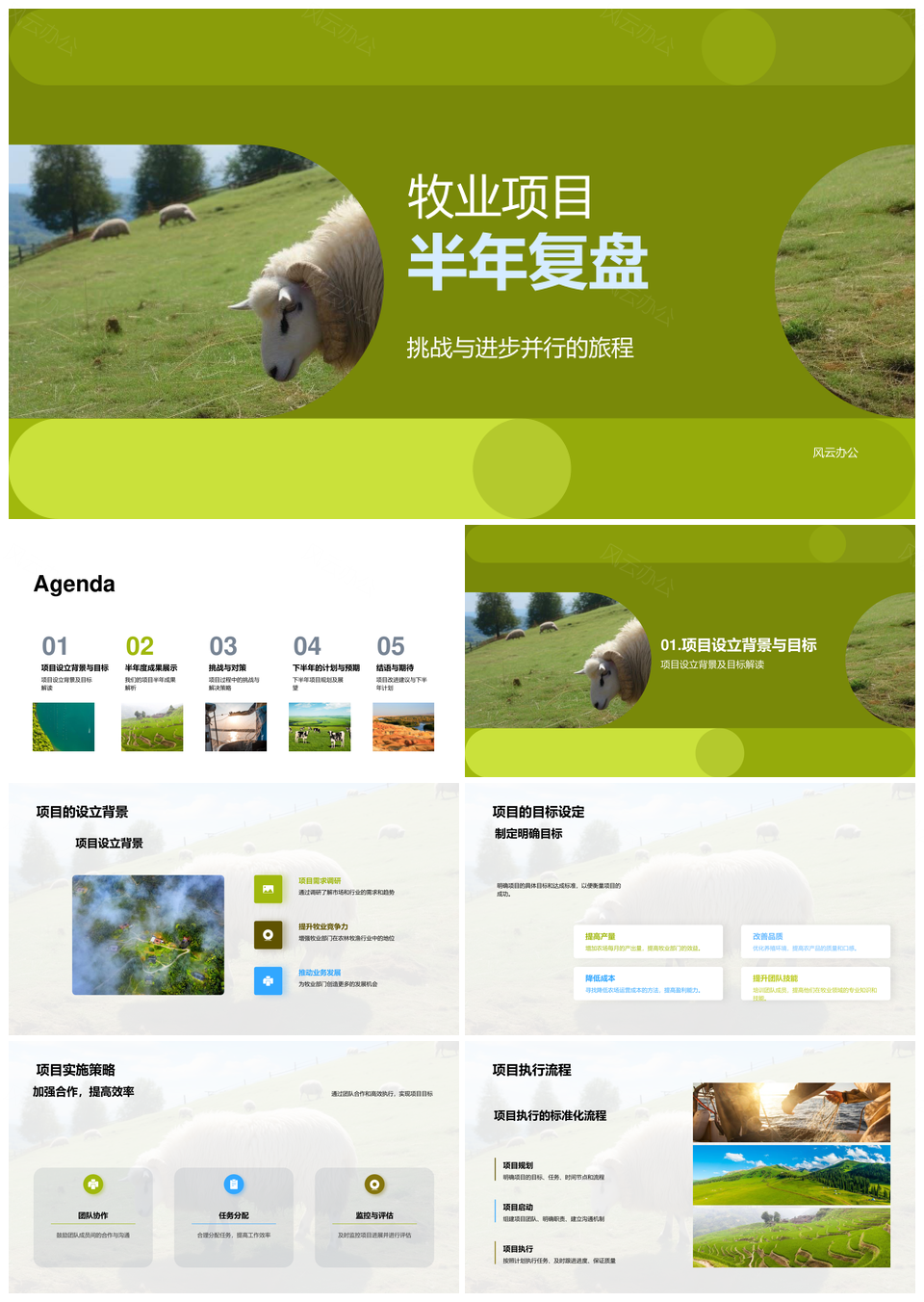 风云办公提供的牧业项目半年复盘成果挑战与规划PPT模板,下载格式为pptx,一共27页,作品中文字及图均可以修改和编辑,图片更改请在作品中右键图片并更换,文字修改请直接点击文字进行修改。