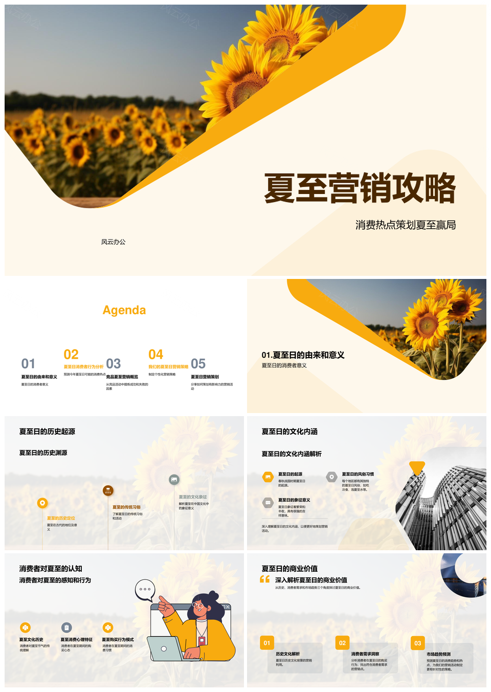 夏至文化消费趋势营销策略提升销售业绩PPT模板