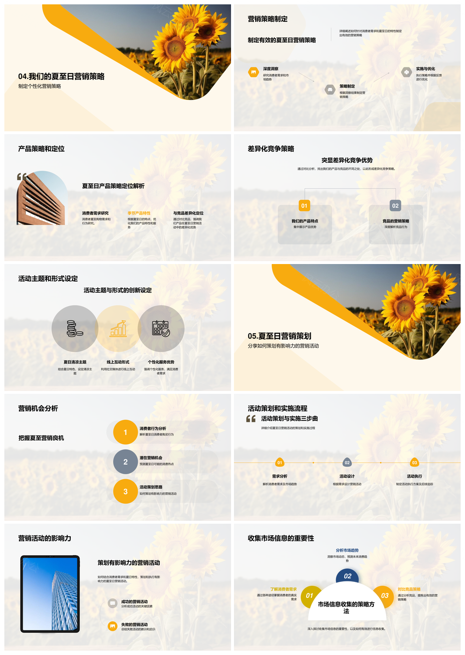 夏季小暑向日葵主题营销策略消费趋势竞品分析PPT模板
