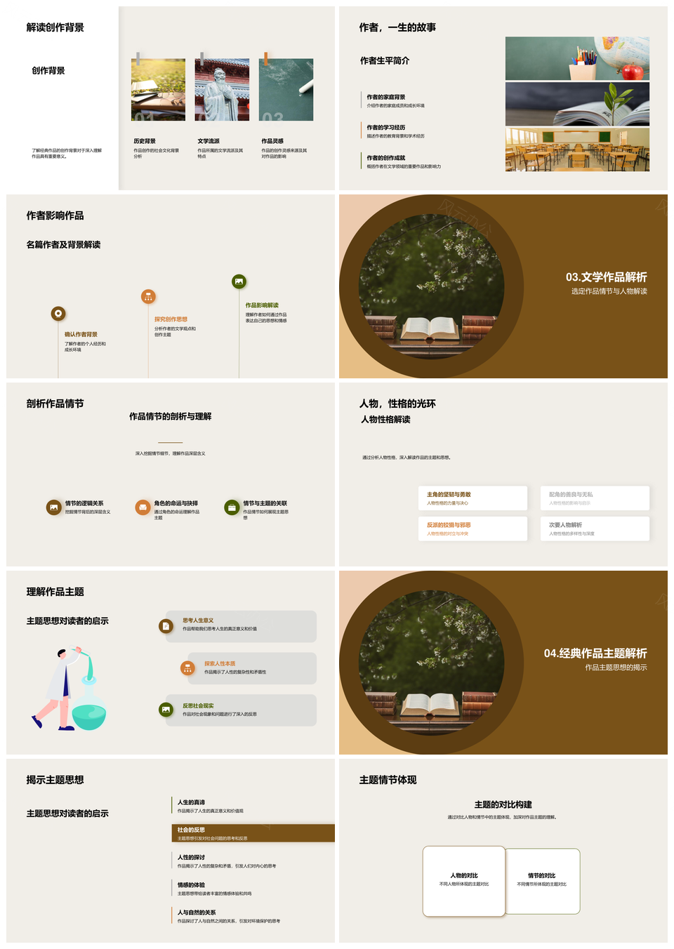 经典文学名篇背景主题创作解析教育普及PPT模板推荐