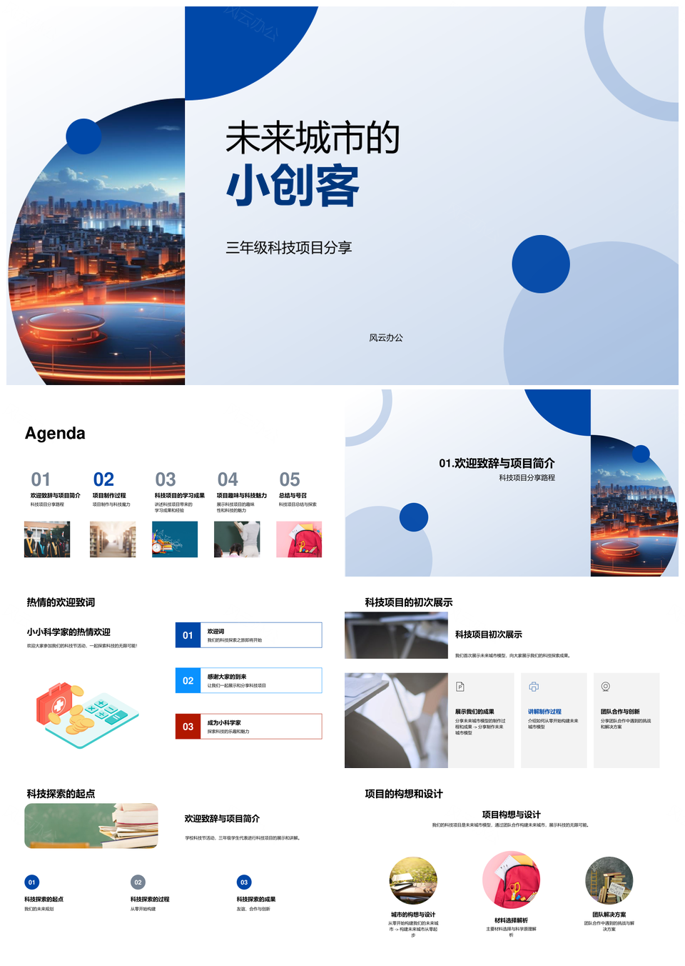 风云办公提供的未来城市小创客科创模型协作创新实践PPT模板,下载格式为pptx,一共33页,作品中文字及图均可以修改和编辑,图片更改请在作品中右键图片并更换,文字修改请直接点击文字进行修改。