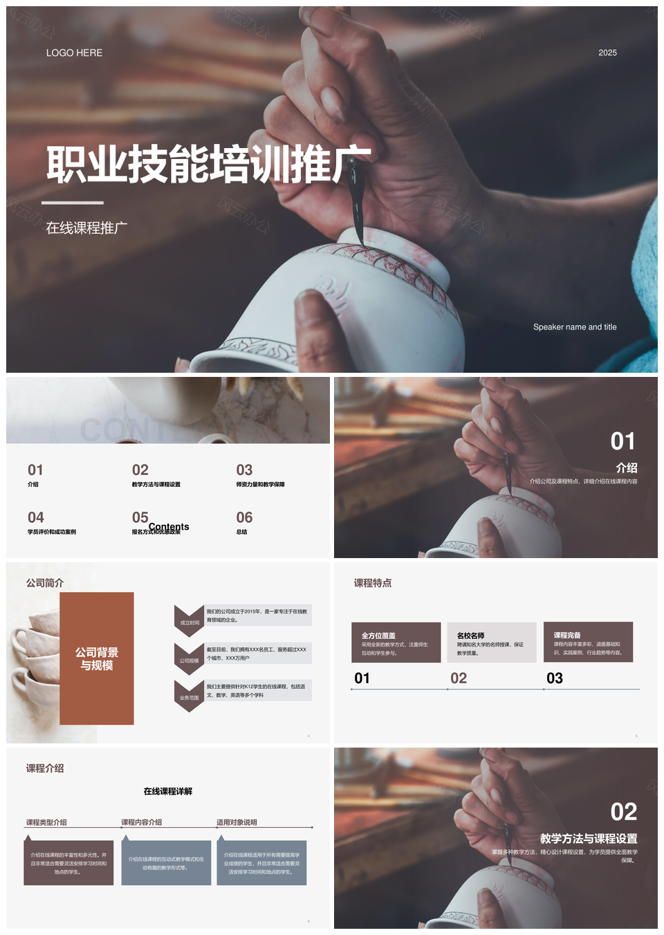 2025灰棕商务现代手工艺职业技能培训PPT模板推荐