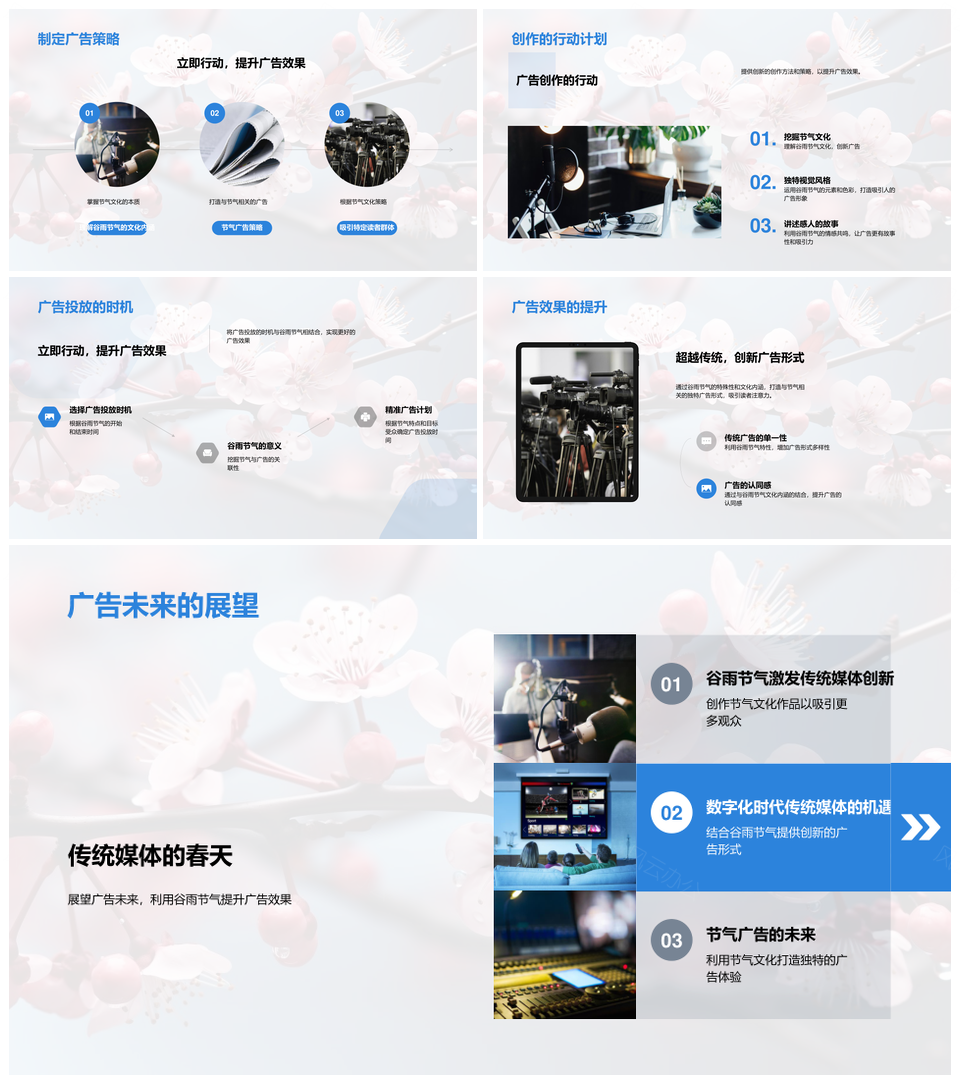 风云办公提供的谷雨传统广告策略效果樱花成功案例PPT模板,下载格式为pptx,一共33页,作品中文字及图均可以修改和编辑,图片更改请在作品中右键图片并更换,文字修改请直接点击文字进行修改。