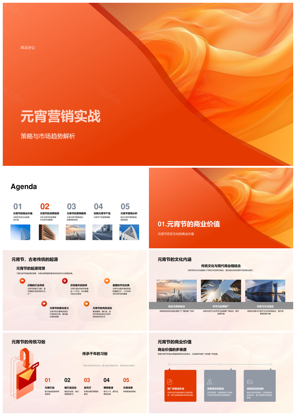 风云办公提供的元宵消费趋势营销策略与商业价值实战PPT模板,下载格式为pptx,一共33页,作品中文字及图均可以修改和编辑,图片更改请在作品中右键图片并更换,文字修改请直接点击文字进行修改。